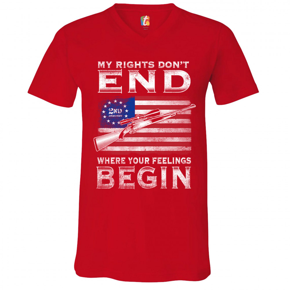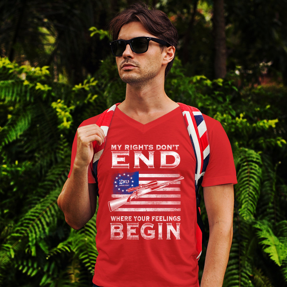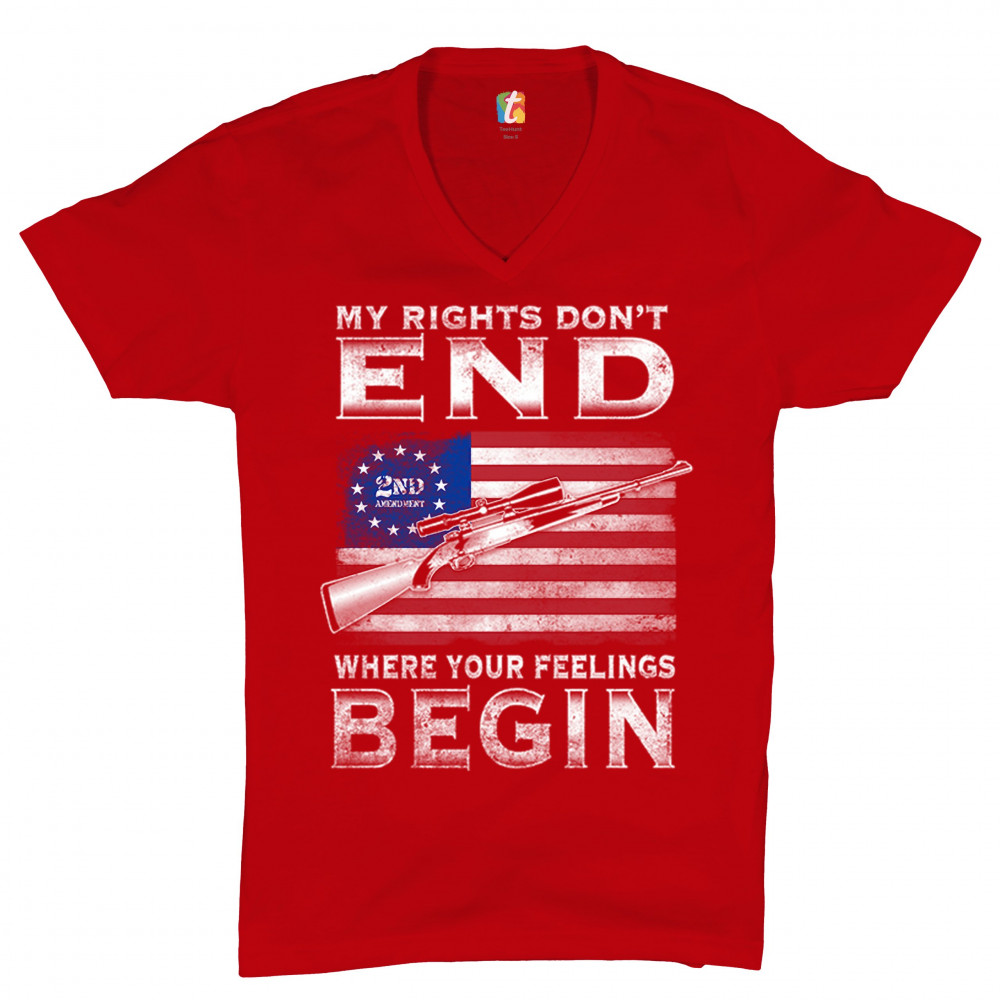MY RIGHTS DON'T END WHERE YOUR FEELINGS BEGIN v-neck t-shirt 2nd amendment tee red