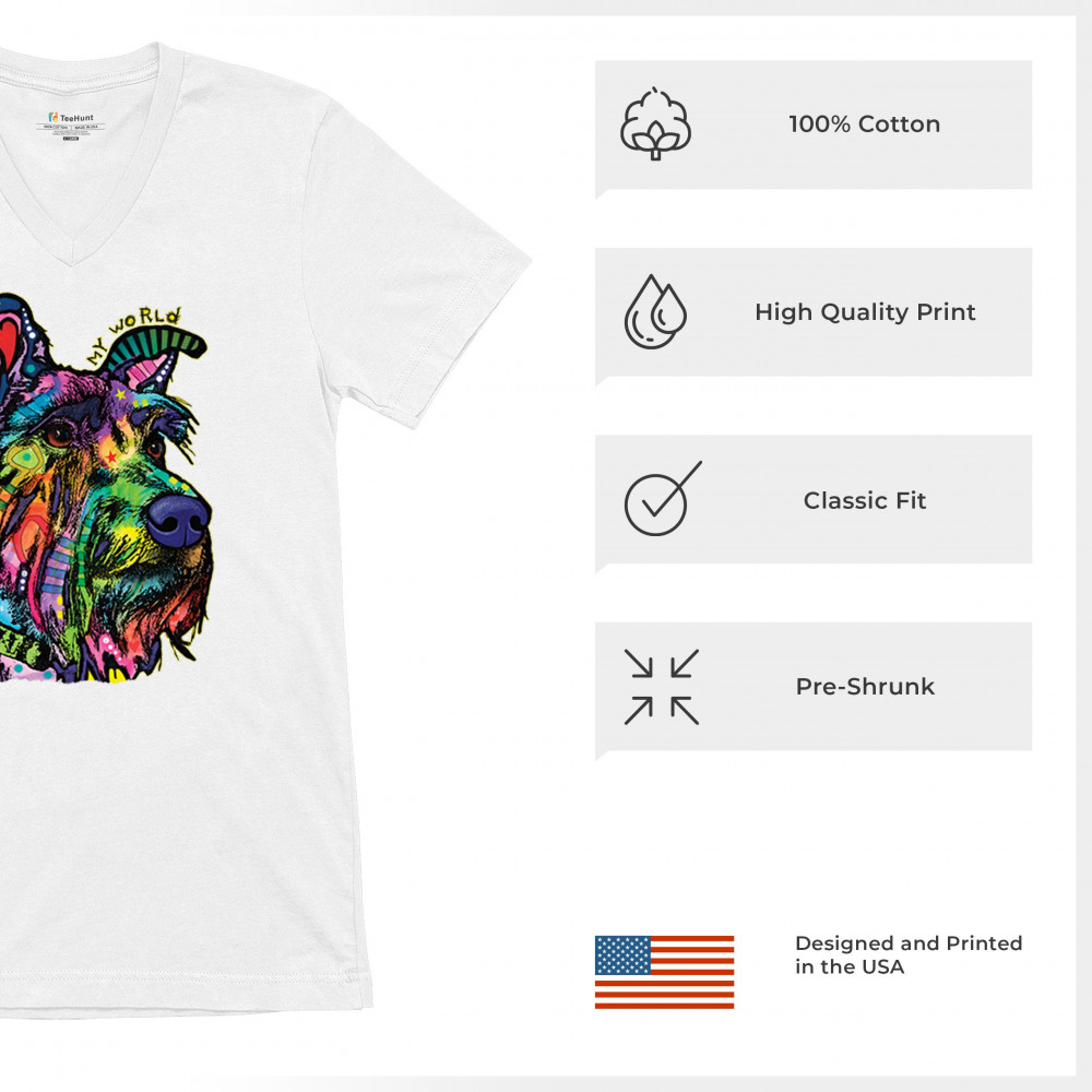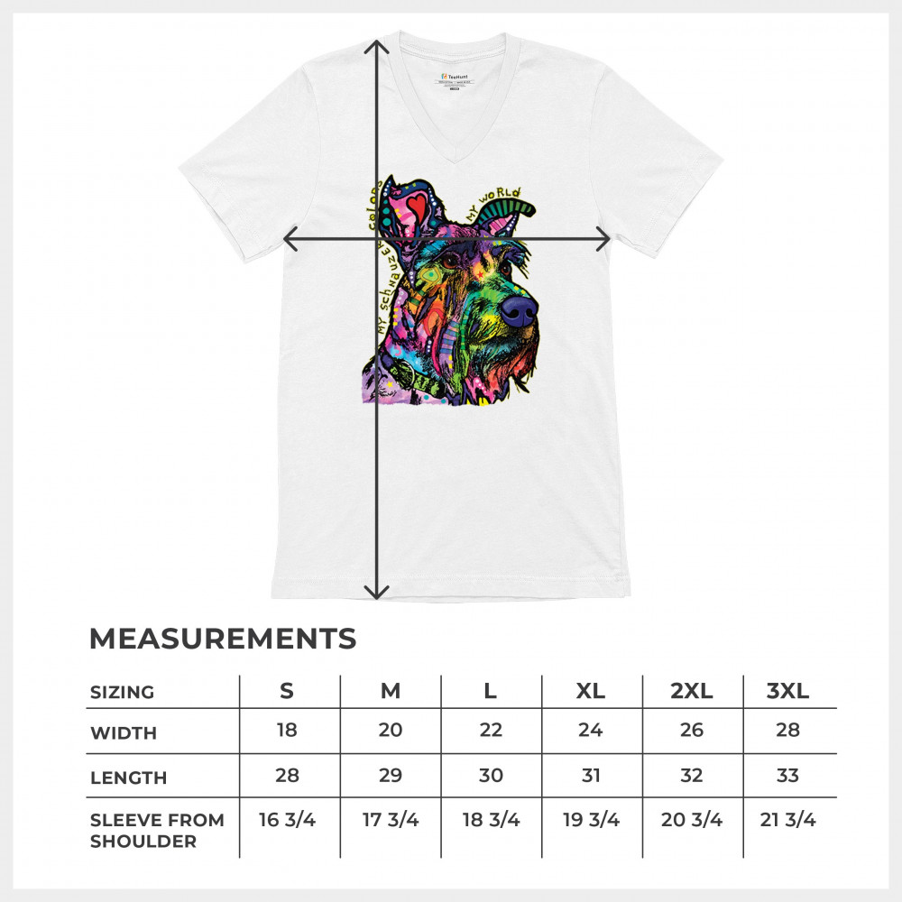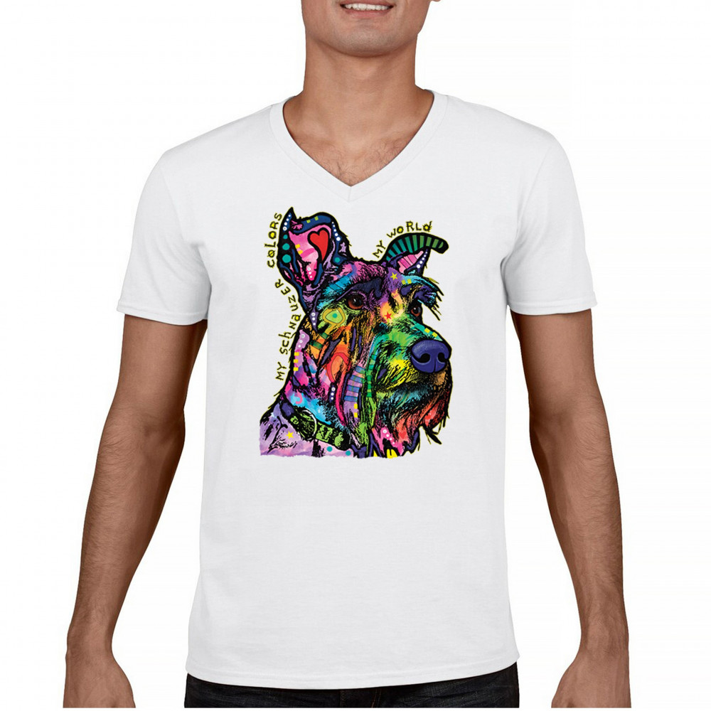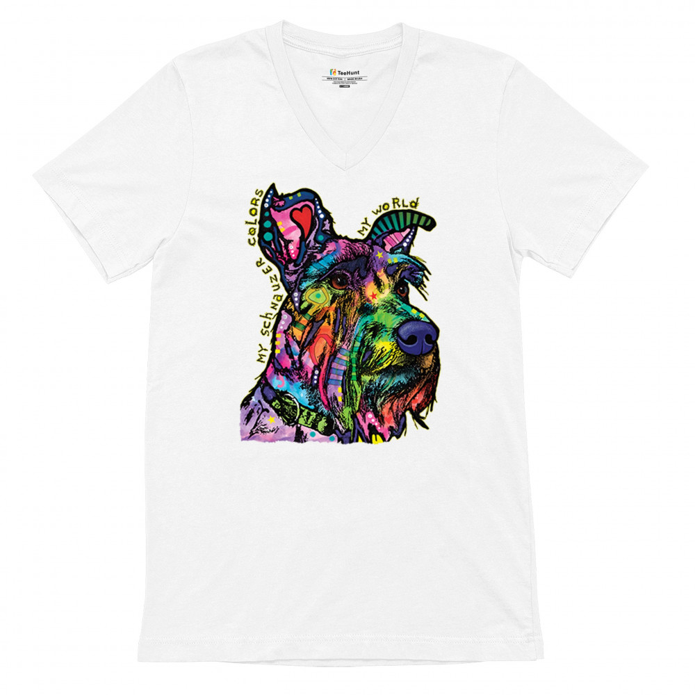 MY SCHNAUZER COLORS MY WORLD v-neck t-shirt dean russo pet dog mom tee white