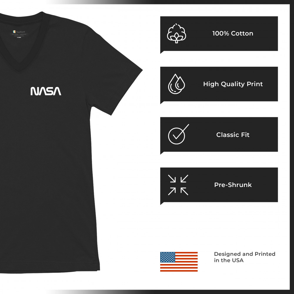 NASA WORM LOGO CREST men's v-neck t-shirt astronaut space mars souvenir emblem black