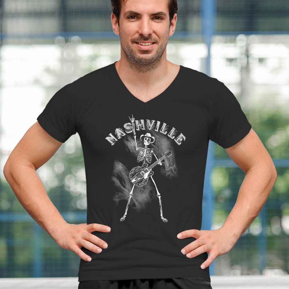 Bold skeleton cowboy design with Nashville grit and country rock vibes. Perfect for fans of music, guitars, and rebel southern style.