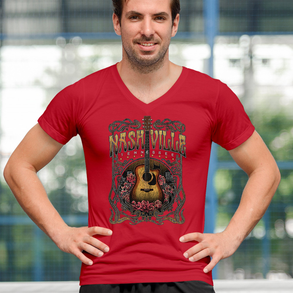 Celebrate the musical soul of Nashville with this vintage guitar and roses design. Perfect for fans of country, bluegrass, and folk music, it captures the charm of Music City with Western-style artwork. Great as a souvenir or for wearing to concerts, tours, and Tennessee road adventures.