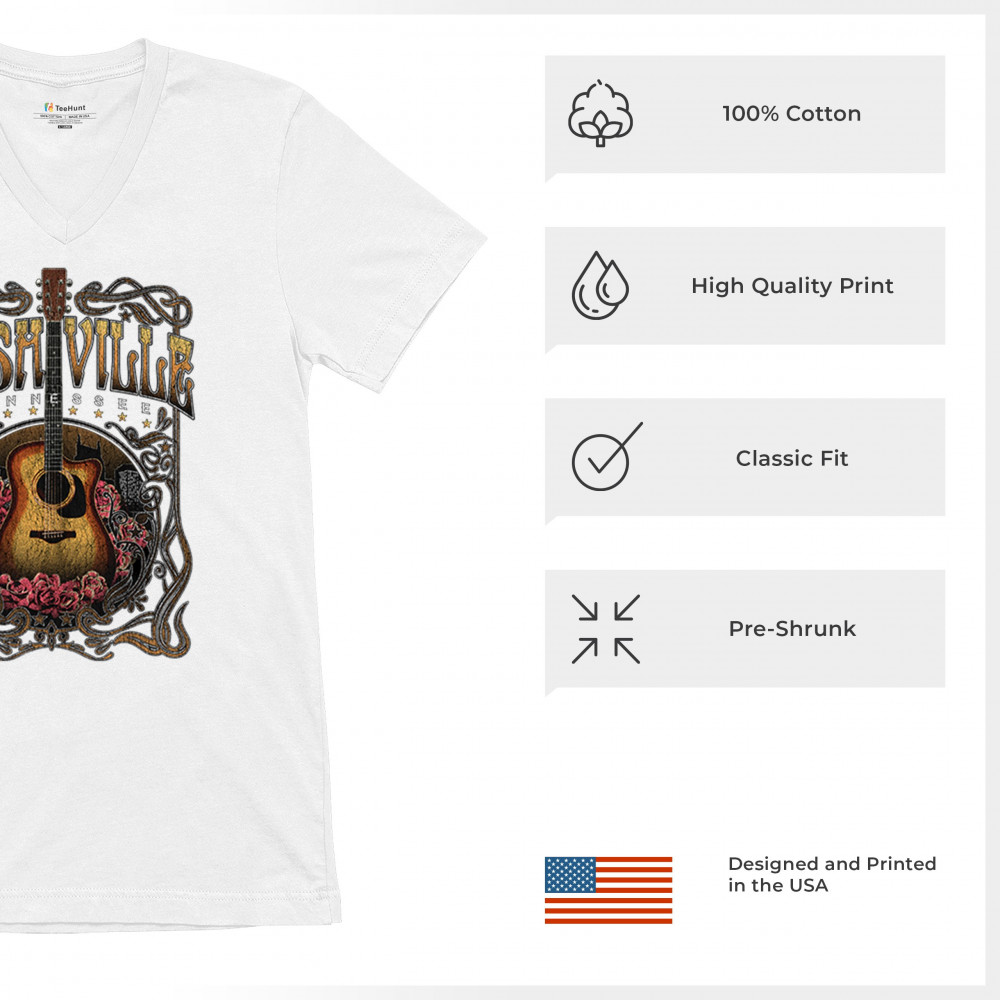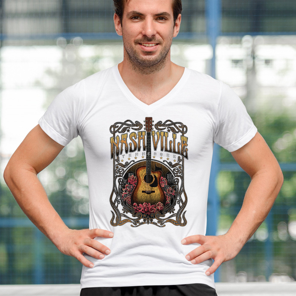 Celebrate the musical soul of Nashville with this vintage guitar and roses design. Perfect for fans of country, bluegrass, and folk music, it captures the charm of Music City with Western-style artwork. Great as a souvenir or for wearing to concerts, tours, and Tennessee road adventures.