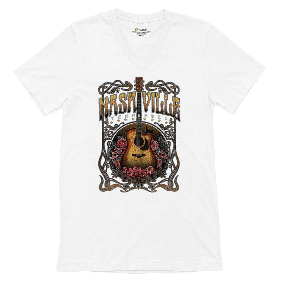 Vintage Nashville Tennessee design with rustic guitar and roses. Great for concerts, country music fans, road trips, and souvenir wear.