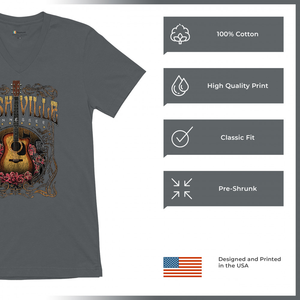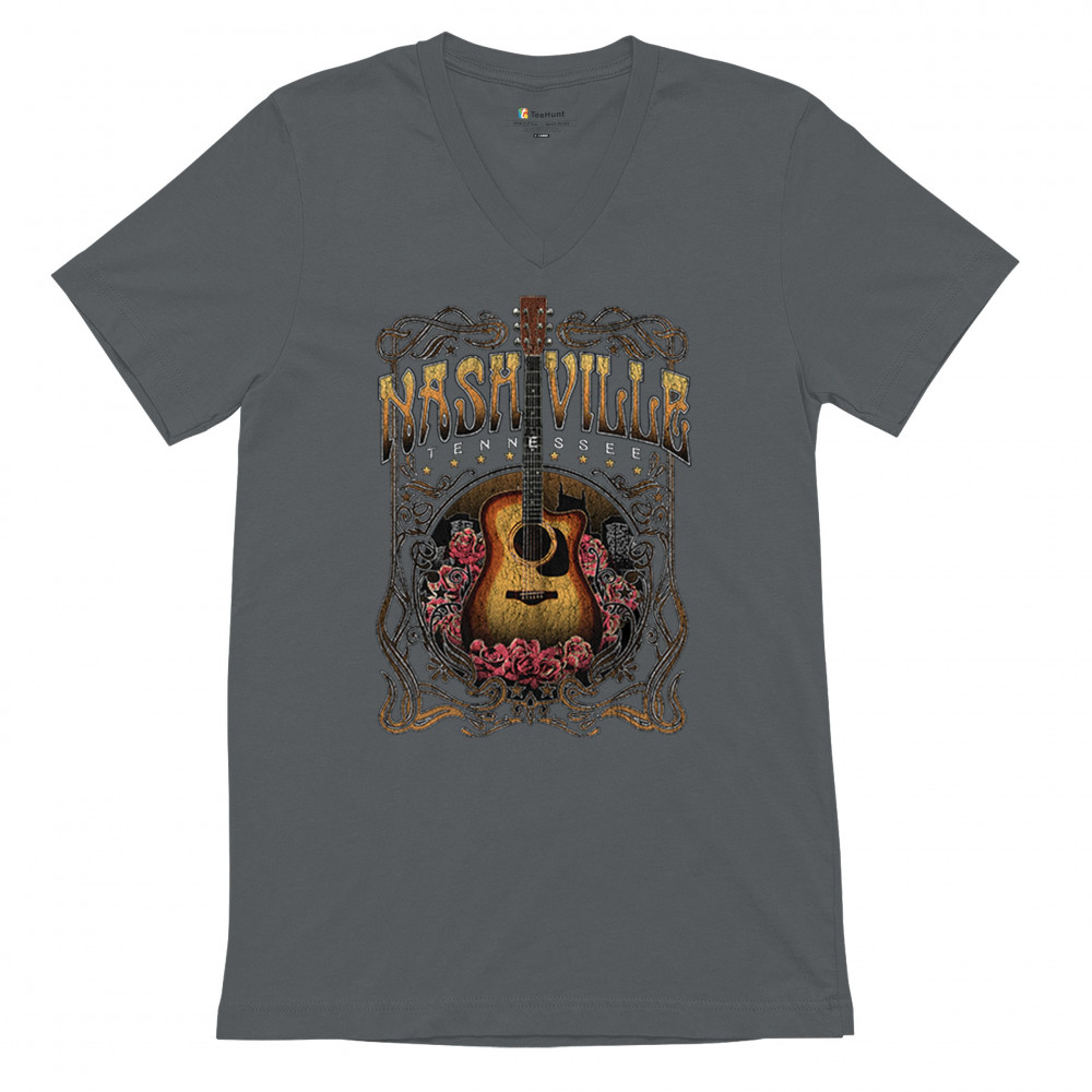 Vintage Nashville Tennessee design with rustic guitar and roses. Great for concerts, country music fans, road trips, and souvenir wear.