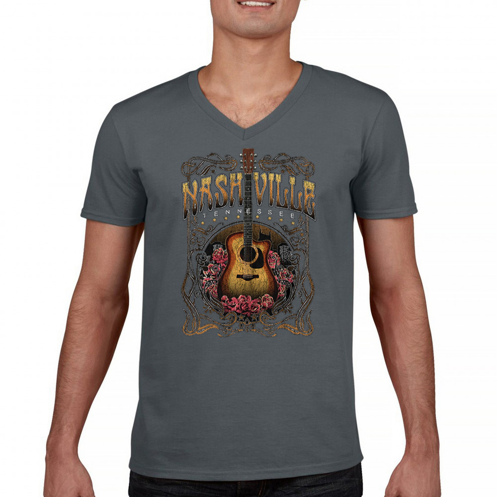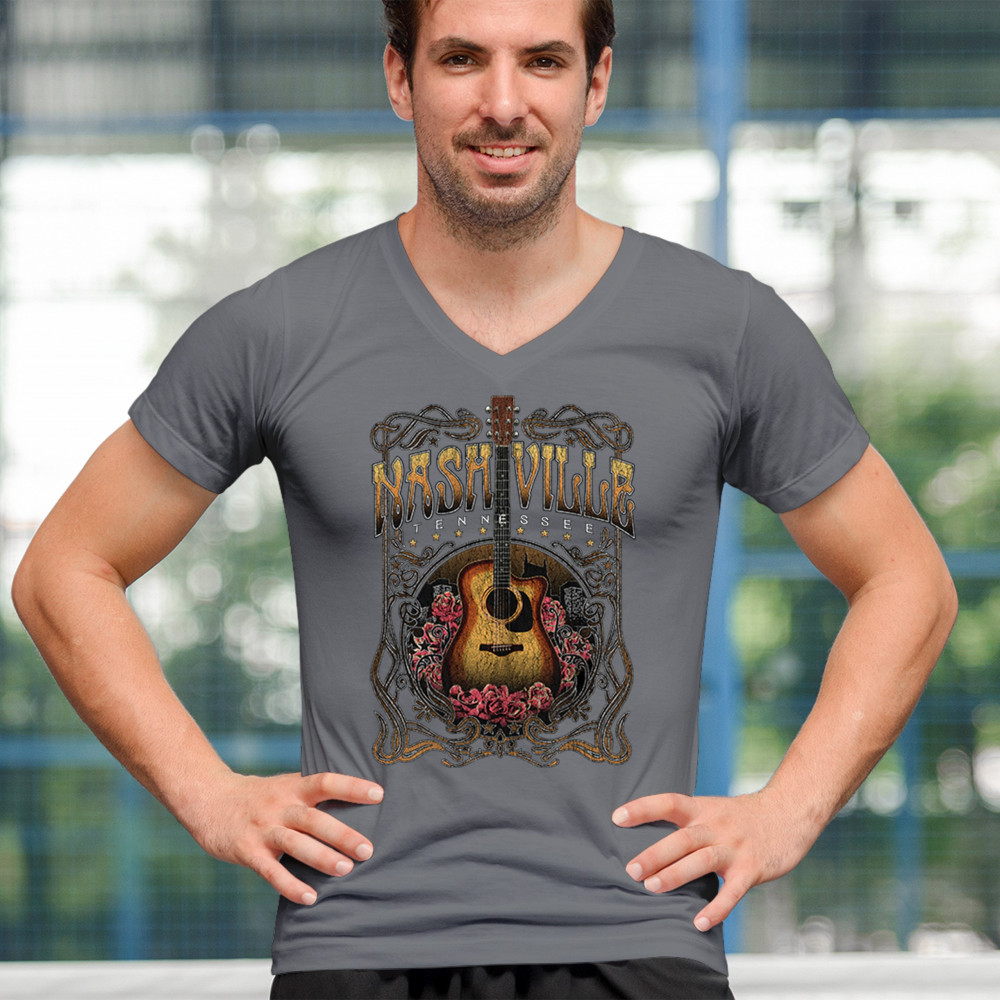 Celebrate the musical soul of Nashville with this vintage guitar and roses design. Perfect for fans of country, bluegrass, and folk music, it captures the charm of Music City with Western-style artwork. Great as a souvenir or for wearing to concerts, tours, and Tennessee road adventures.