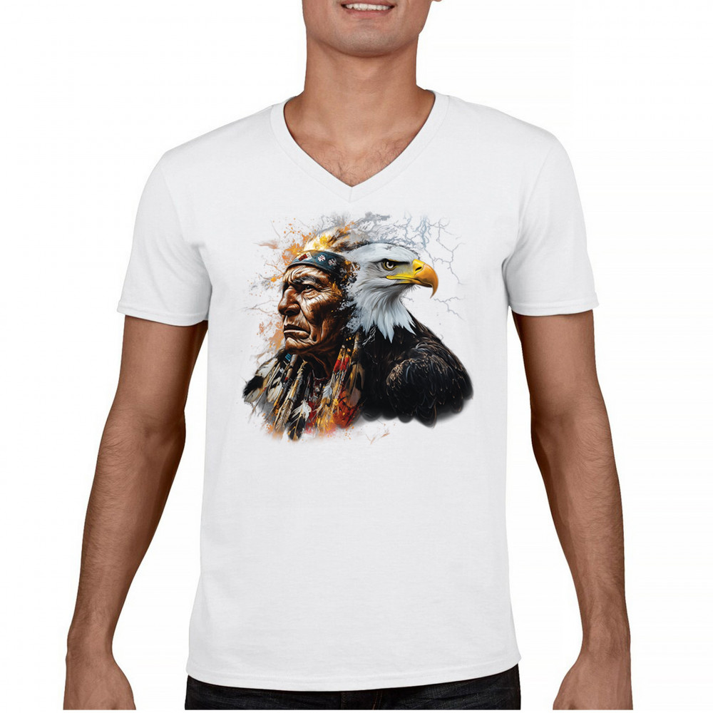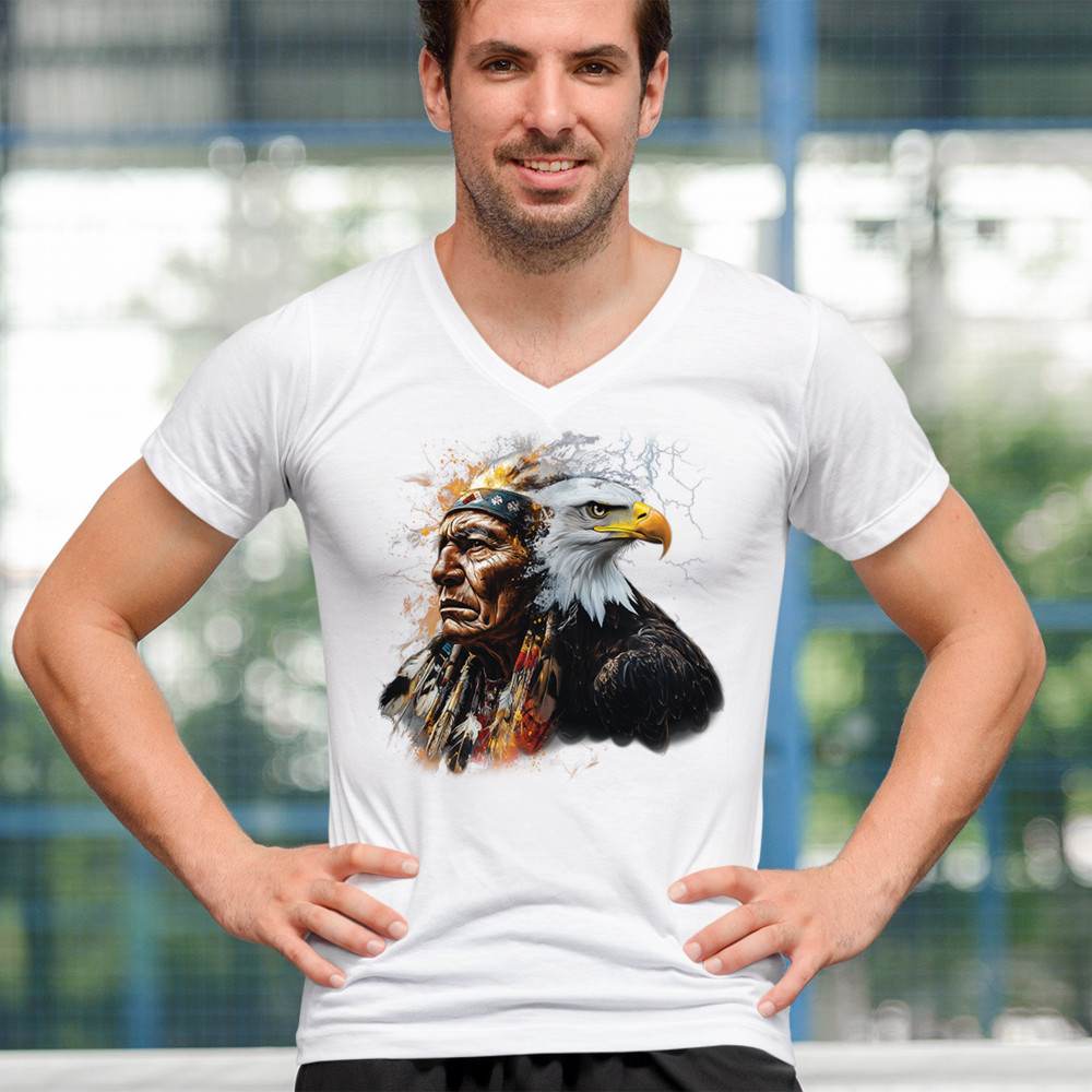 Bold tribal totem design with Native chief, eagle, lightning, and fire. A fierce blend of spirit, power, and cultural pride in one image.
