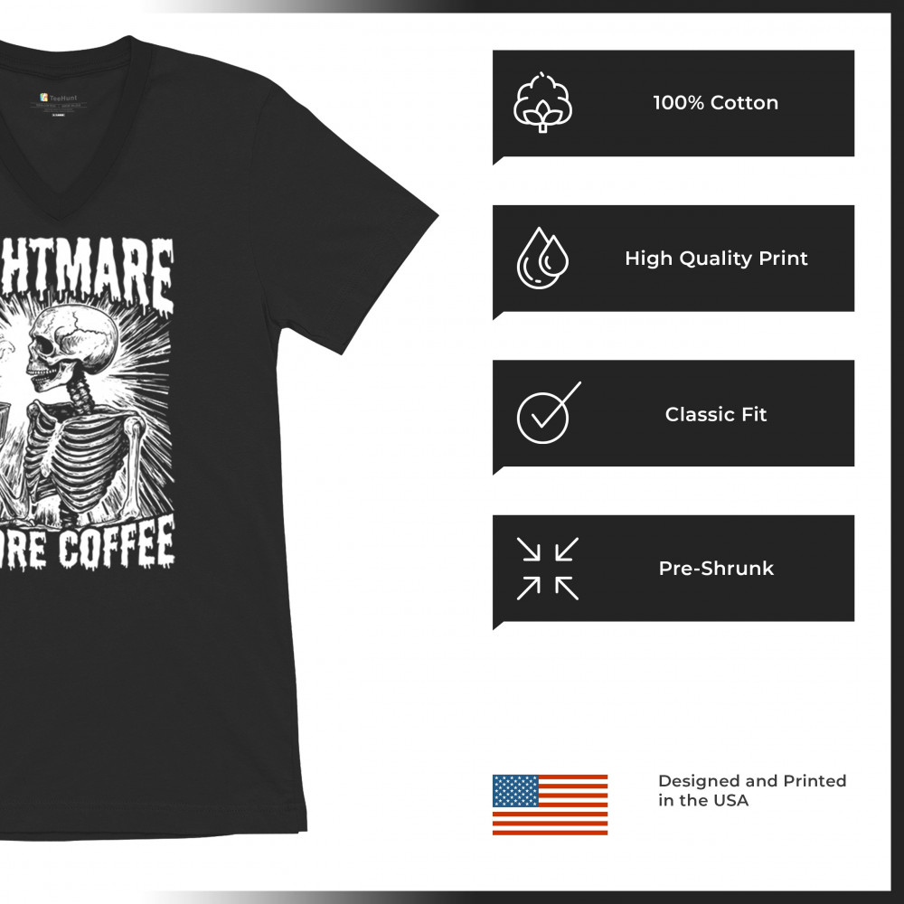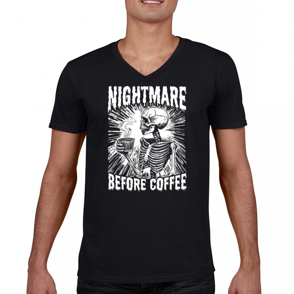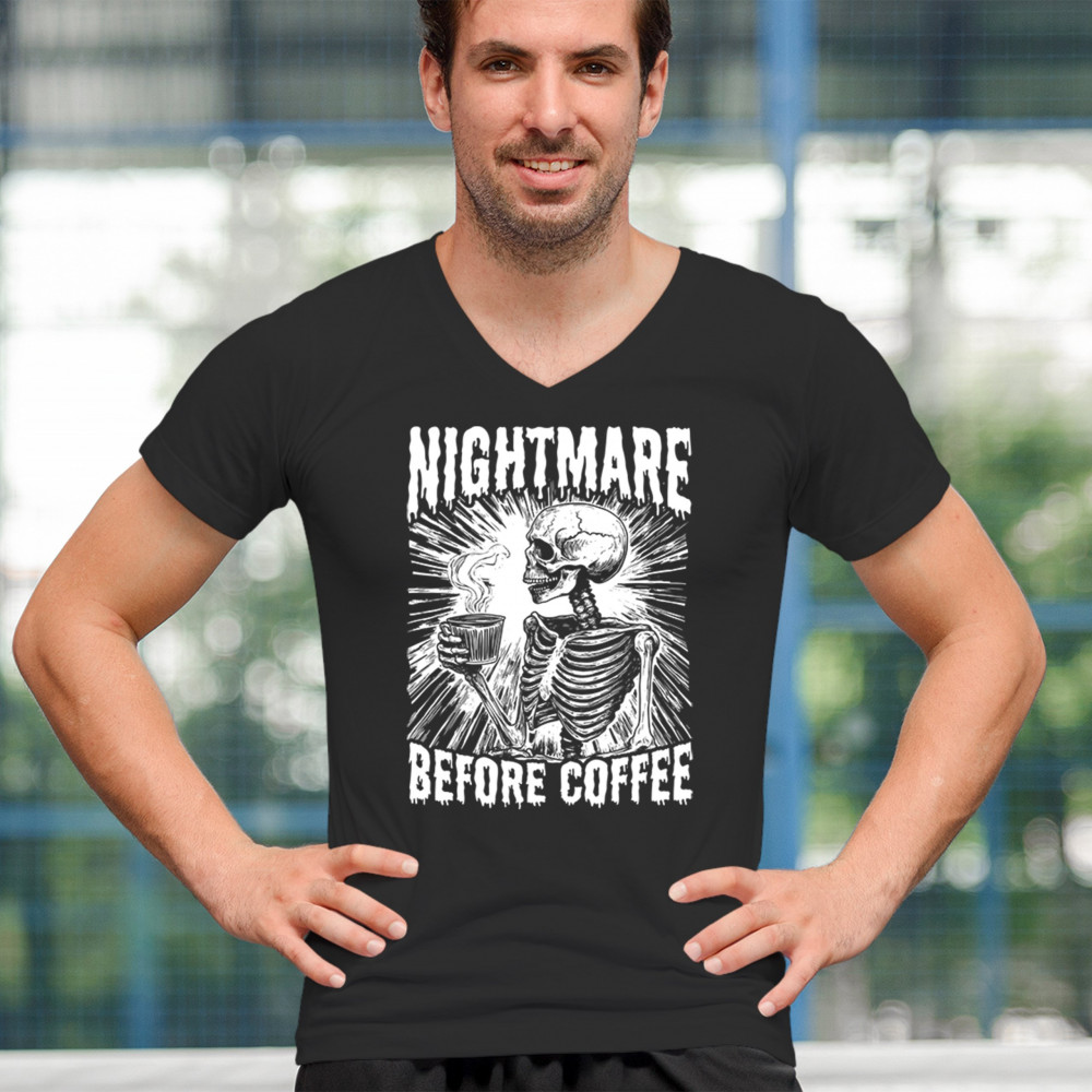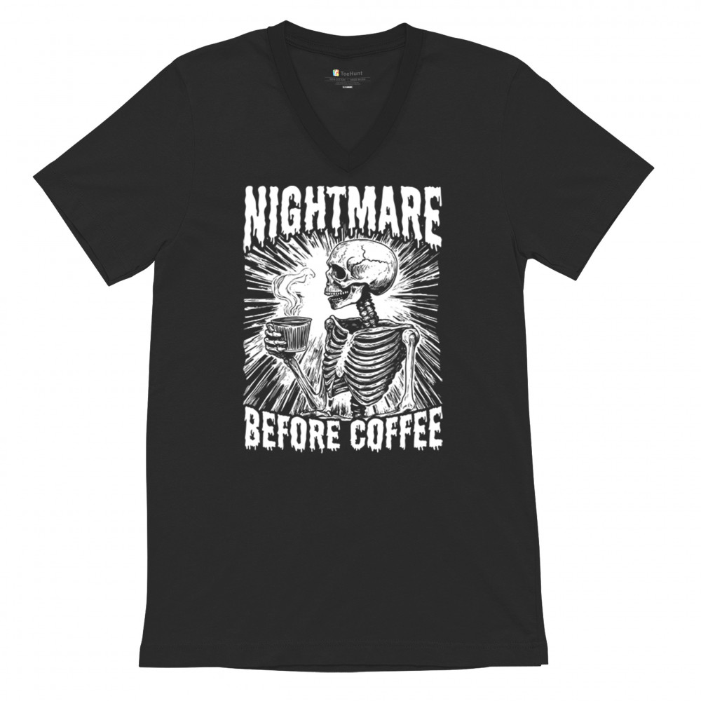 Show off your love for coffee with this quirky "Nightmare Before Coffee" skeleton design, blending humor and gothic style for caffeine lovers.