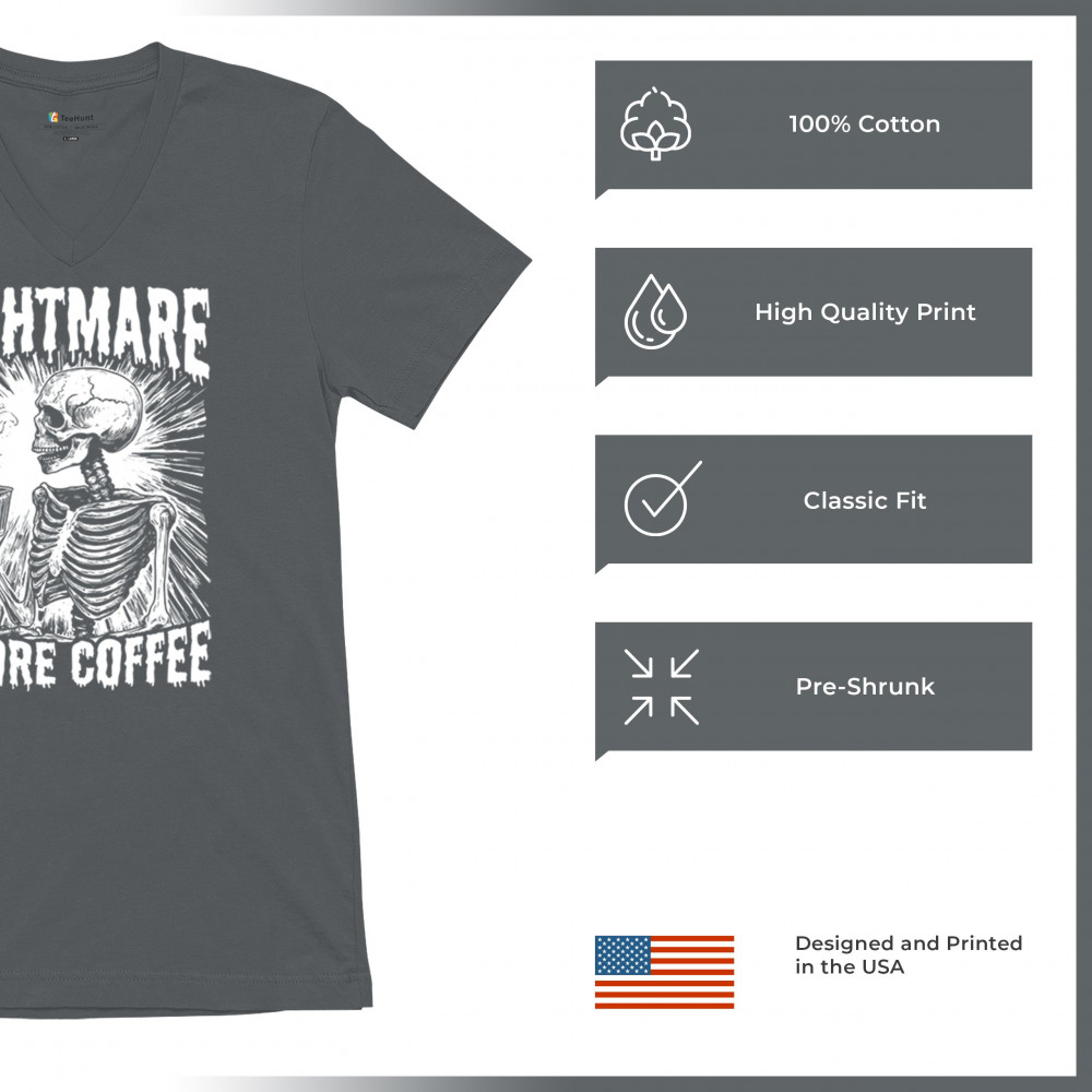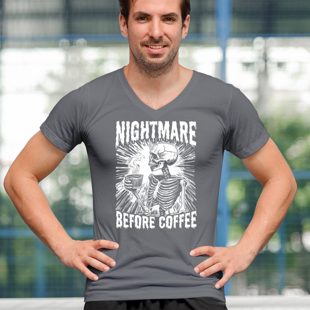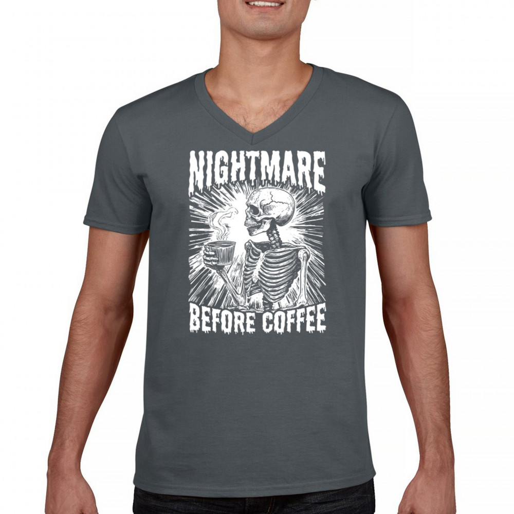 Show off your love for coffee with this quirky "Nightmare Before Coffee" skeleton design, blending humor and gothic style for caffeine lovers.