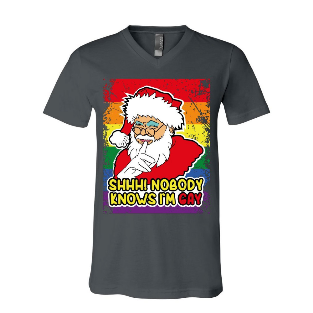 NOBODY KNOWS I'M GAY v-neck t-shirt christmas santa lgbt xmas ho ho ho tee charcoal