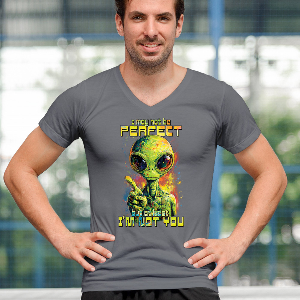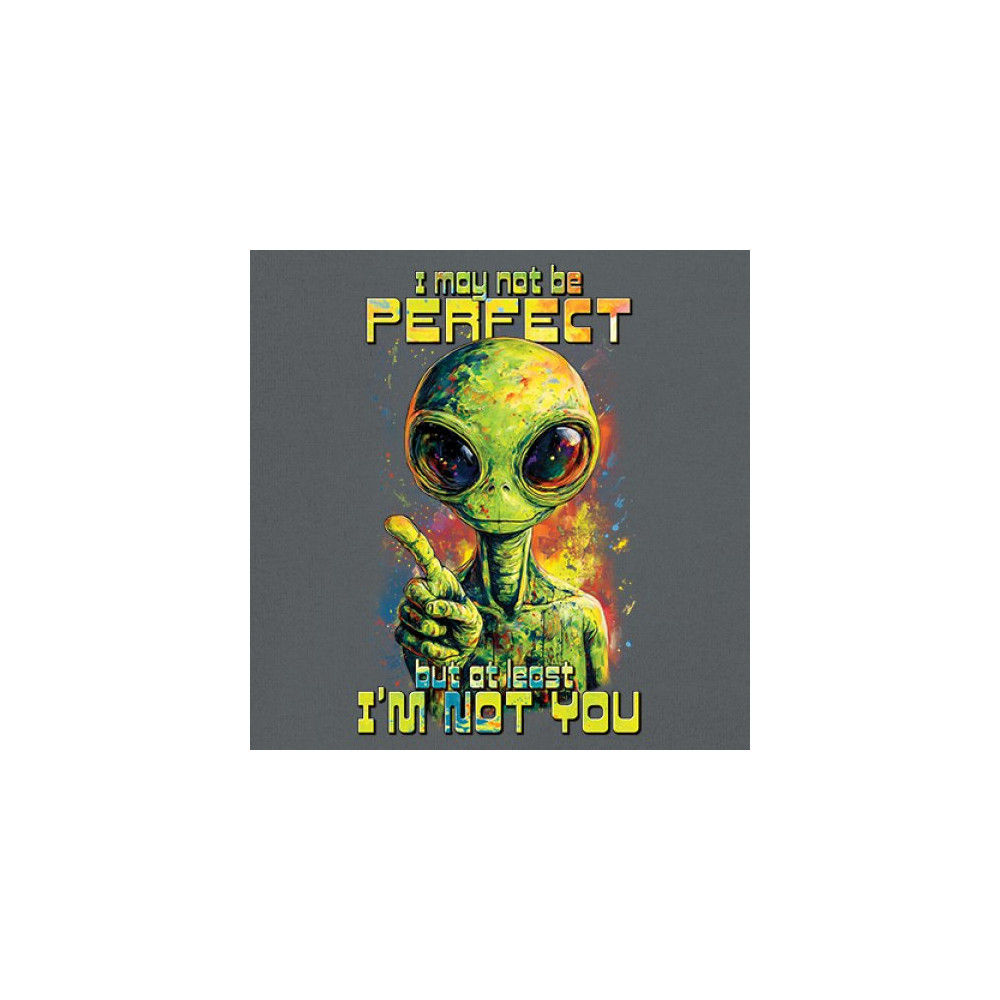 This smug alien design delivers sharp sarcastic humor with vibrant cosmic flair. Featuring a big-eyed extraterrestrial and the quote “I may not be perfect, but at least I’m not you,†it’s perfect for sci-fi fans, alien lovers, jokesters, and oddballs alike. A bold, funny statement for parties, UFO events, and festivals.