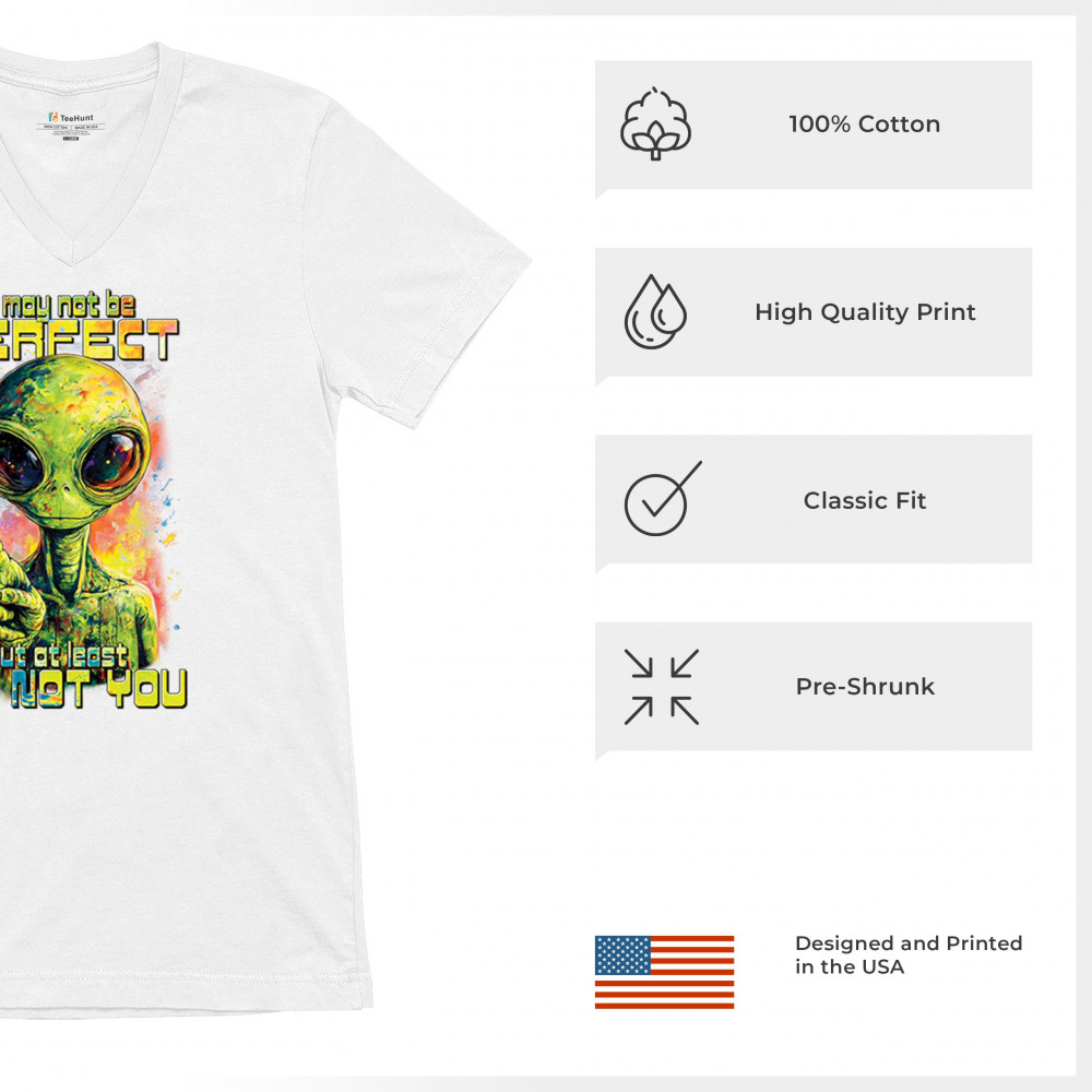 This smug alien design delivers sharp sarcastic humor with vibrant cosmic flair. Featuring a big-eyed extraterrestrial and the quote “I may not be perfect, but at least I’m not you,†it’s perfect for sci-fi fans, alien lovers, jokesters, and oddballs alike. A bold, funny statement for parties, UFO events, and festivals.