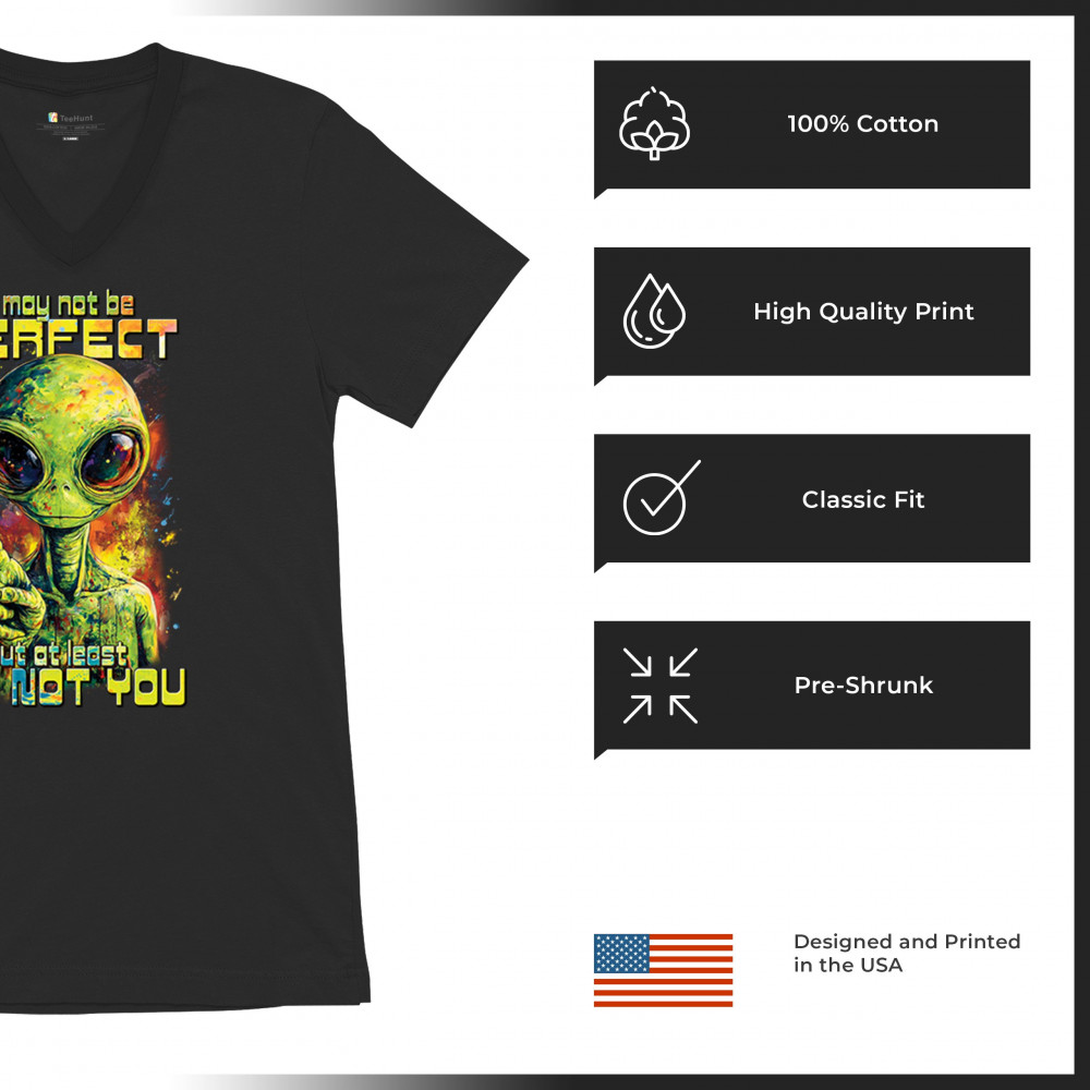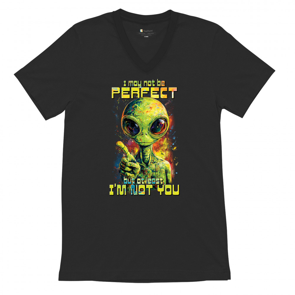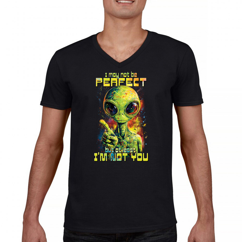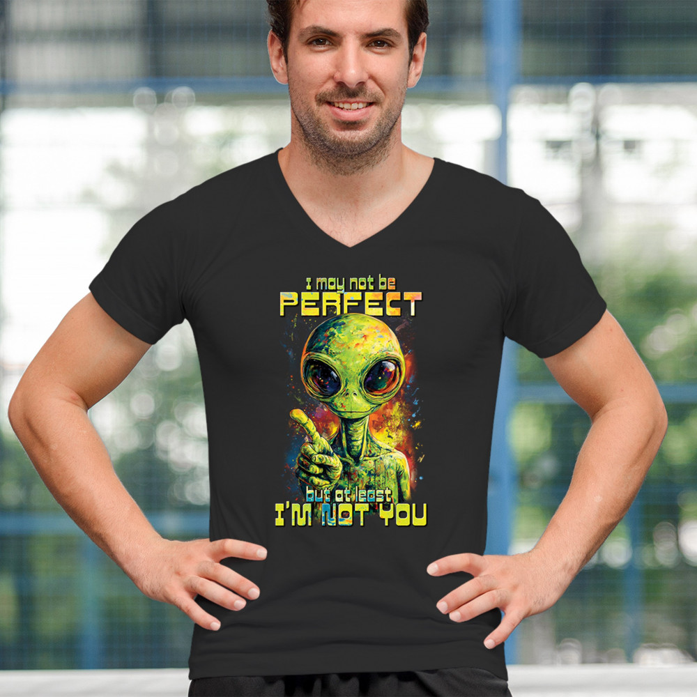 NOT PERFECT BUT AT LEAST NOT YOU men's v-neck t-shirt funny alien ufo humor black