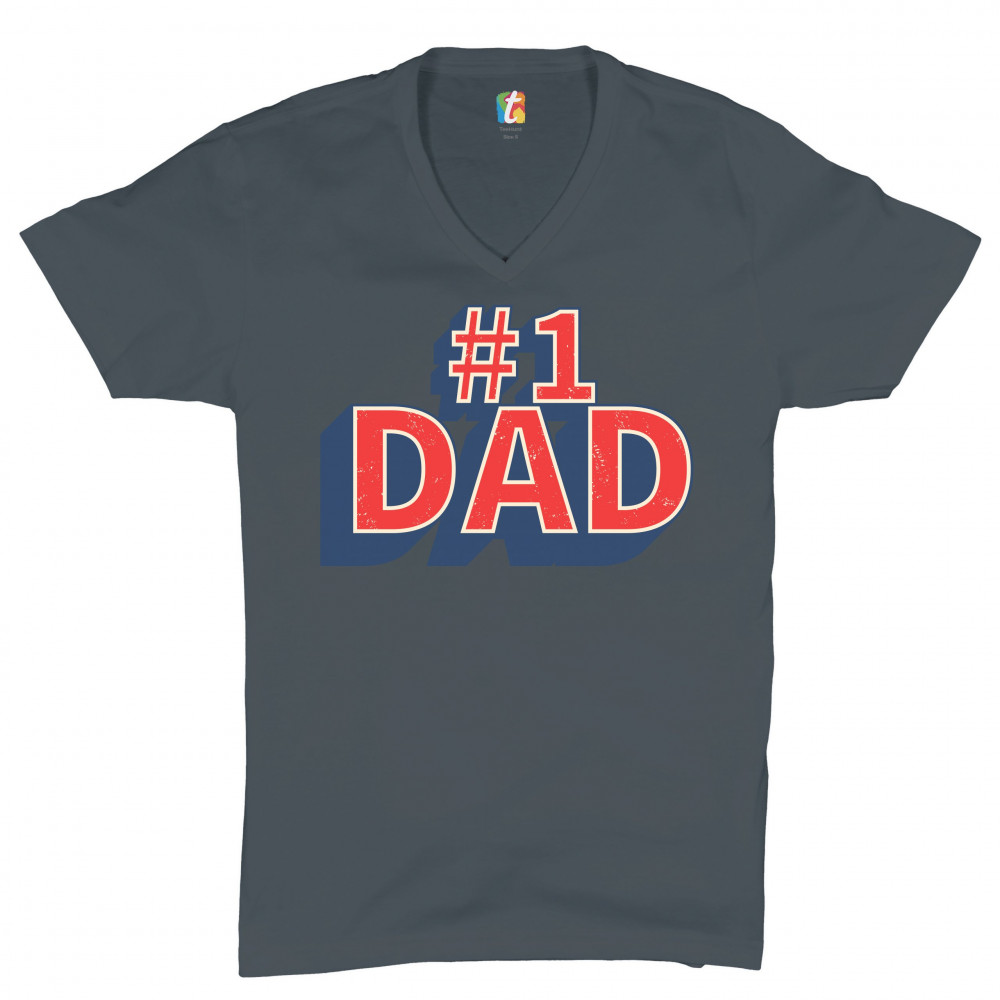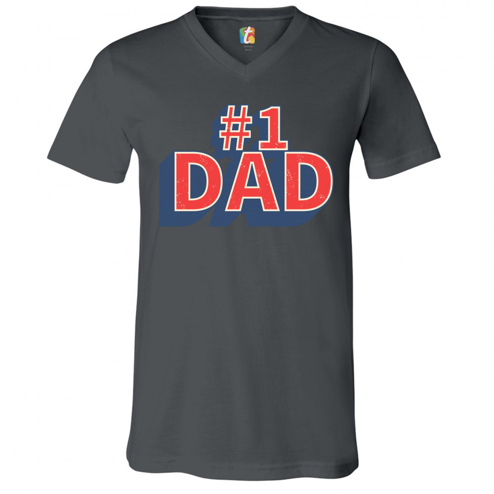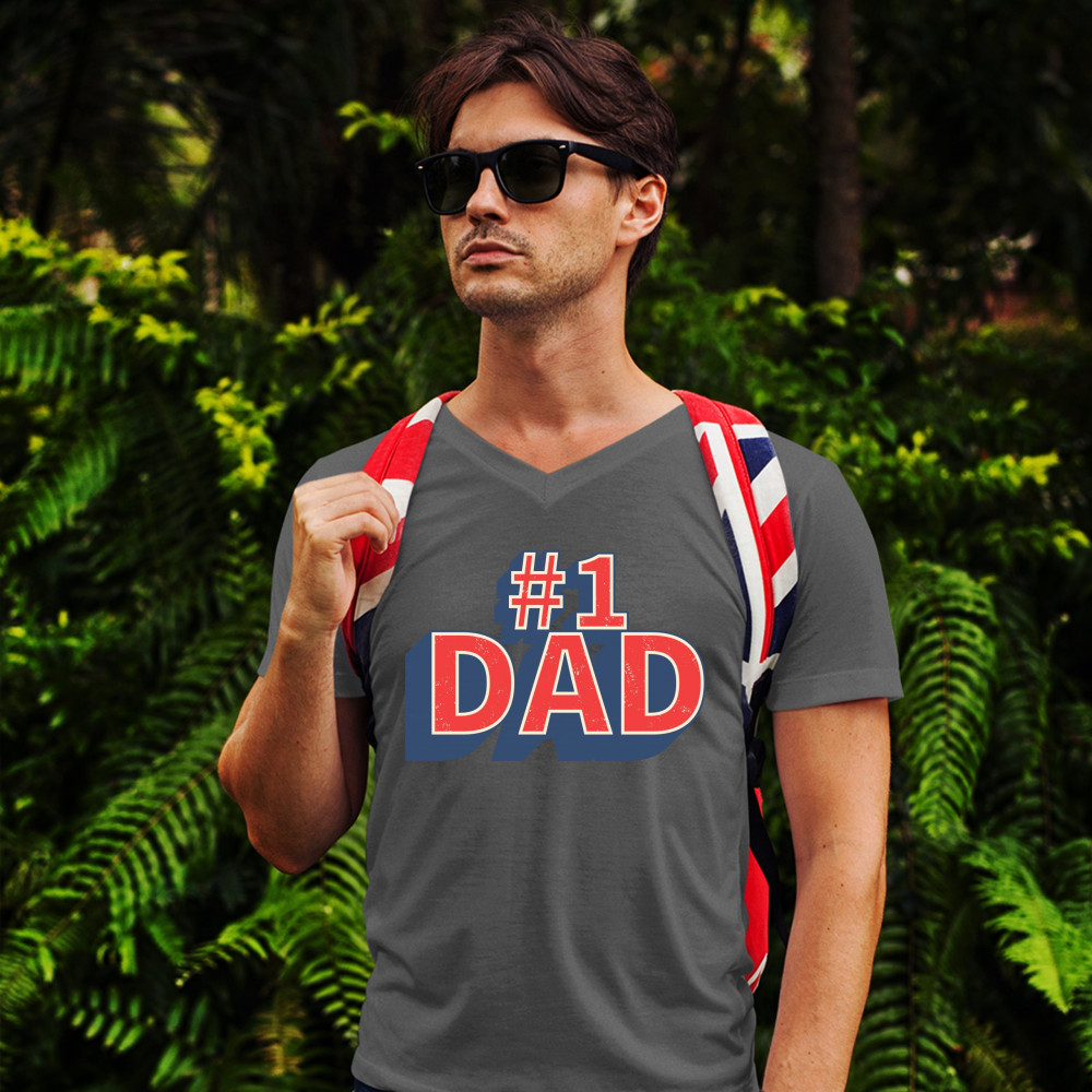 NUMBER 1 DAD v-neck t-shirt father's day world's greatest dad fatherhood tee charcoal