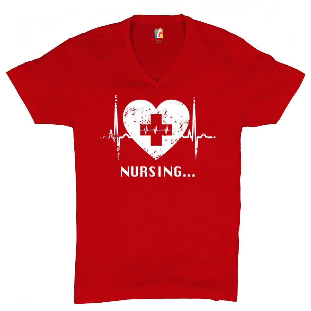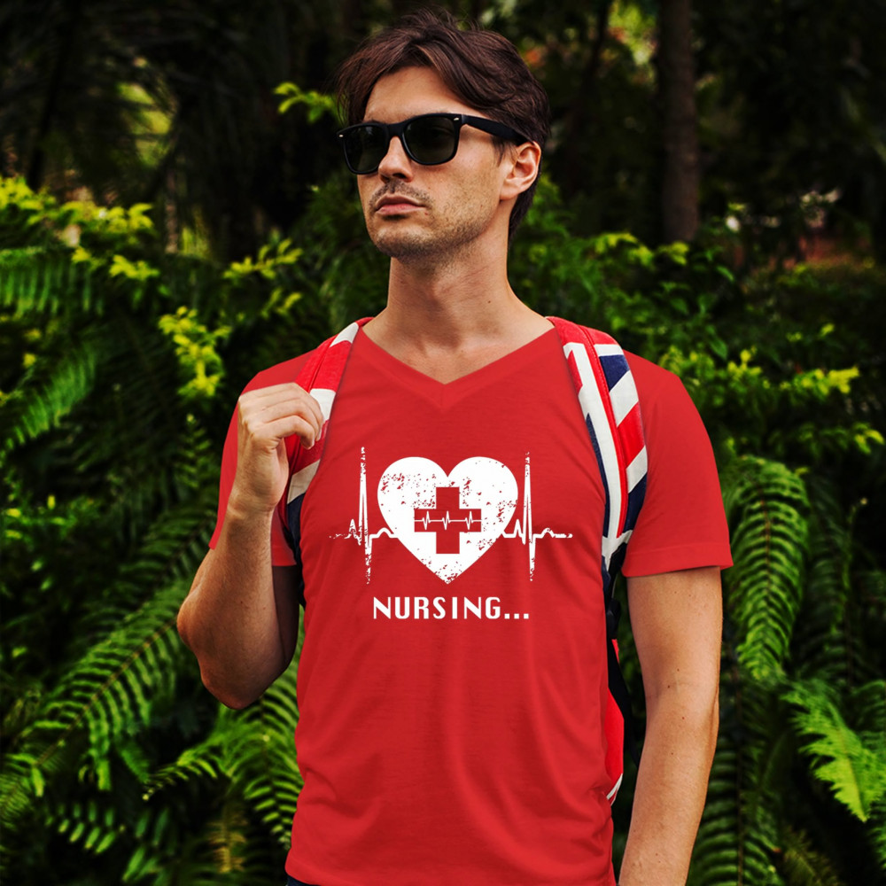 A print featuring a heart with a cross in it's center and saying "Nursing...". Inside of the cross and to the sides of the heart there is a heartbeat graph. A great choice as a gift for a registered nurse, who is busy everyday saving people's lives.