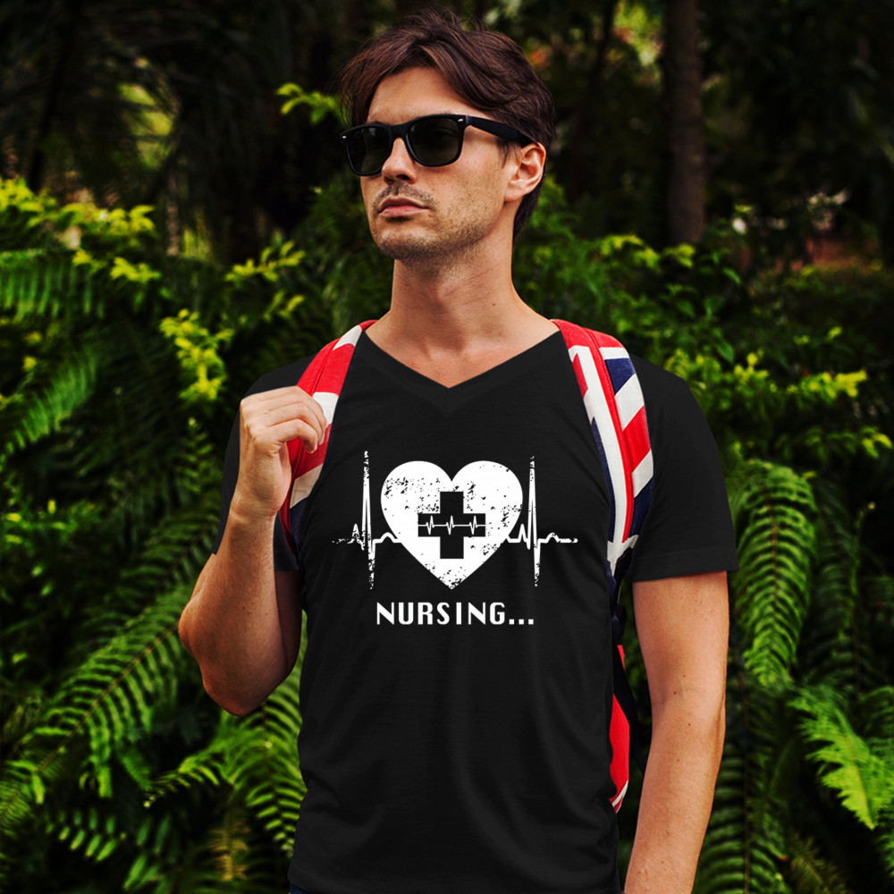 NURSING HEARTBEAT v-neck t-shirt cpr first aid medical assistant emt ems tee black