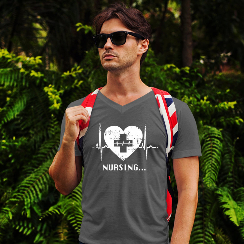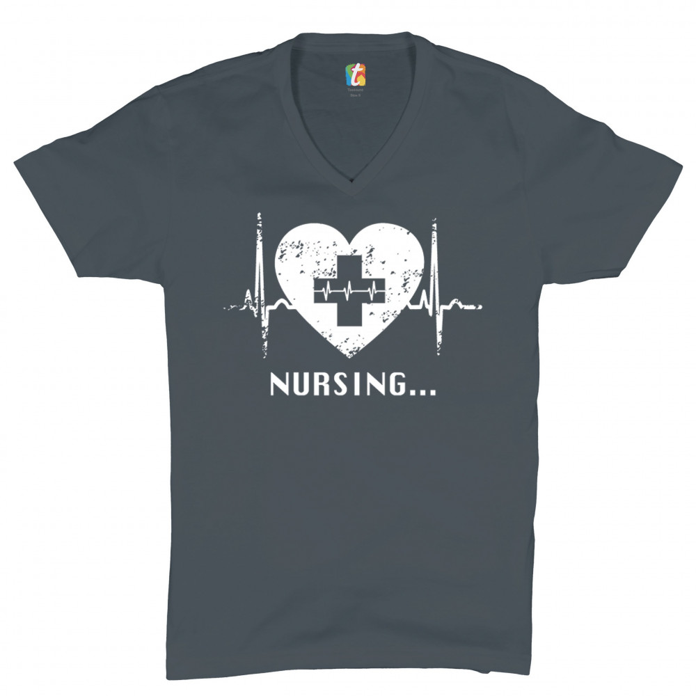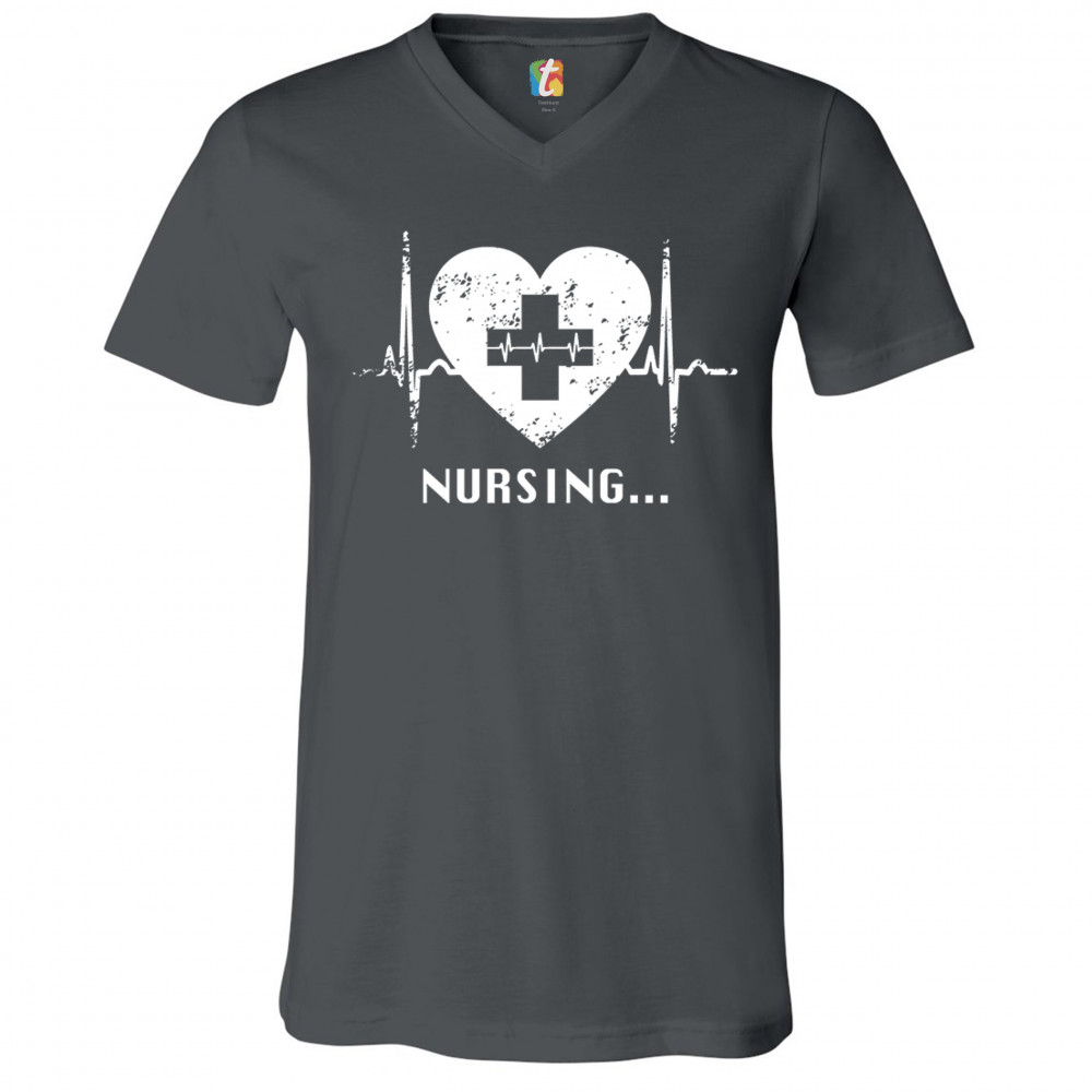 NURSING HEARTBEAT v-neck t-shirt cpr first aid medical assistant emt ems tee charcoal