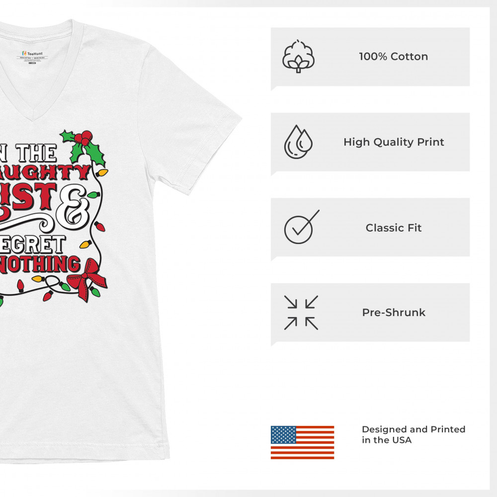 Express your holiday spirit with humor through the "Naughty List & I Regret Nothing" design, a perfect companion for Christmas celebrations, gift exchanges, or festive family gatherings. It adds a touch of playfulness to your winter wardrobe while spreading joy and laughter. Ideal for pairing with an ugly sweater or cozy holiday apparel, it’s the ultimate way to stay jolly and carefree throughout the season.