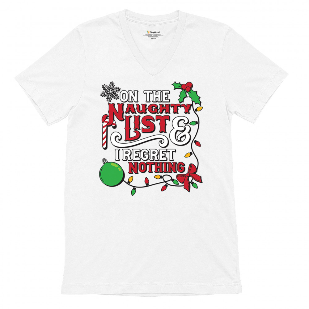 Celebrate the holidays with the playful “Naughty List & I Regret Nothing†design. Perfect for festive gatherings, ugly sweater parties, and holiday fun!