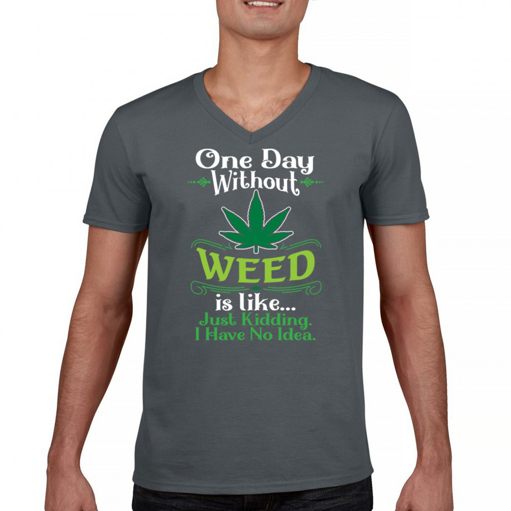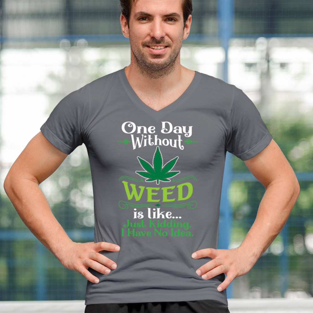 Humorous "One Day Without Weed" design with a bold cannabis leaf. Perfect for fans of Mary Jane, stoned humor, and relaxed, trippy style. Ideal for chill vibes.