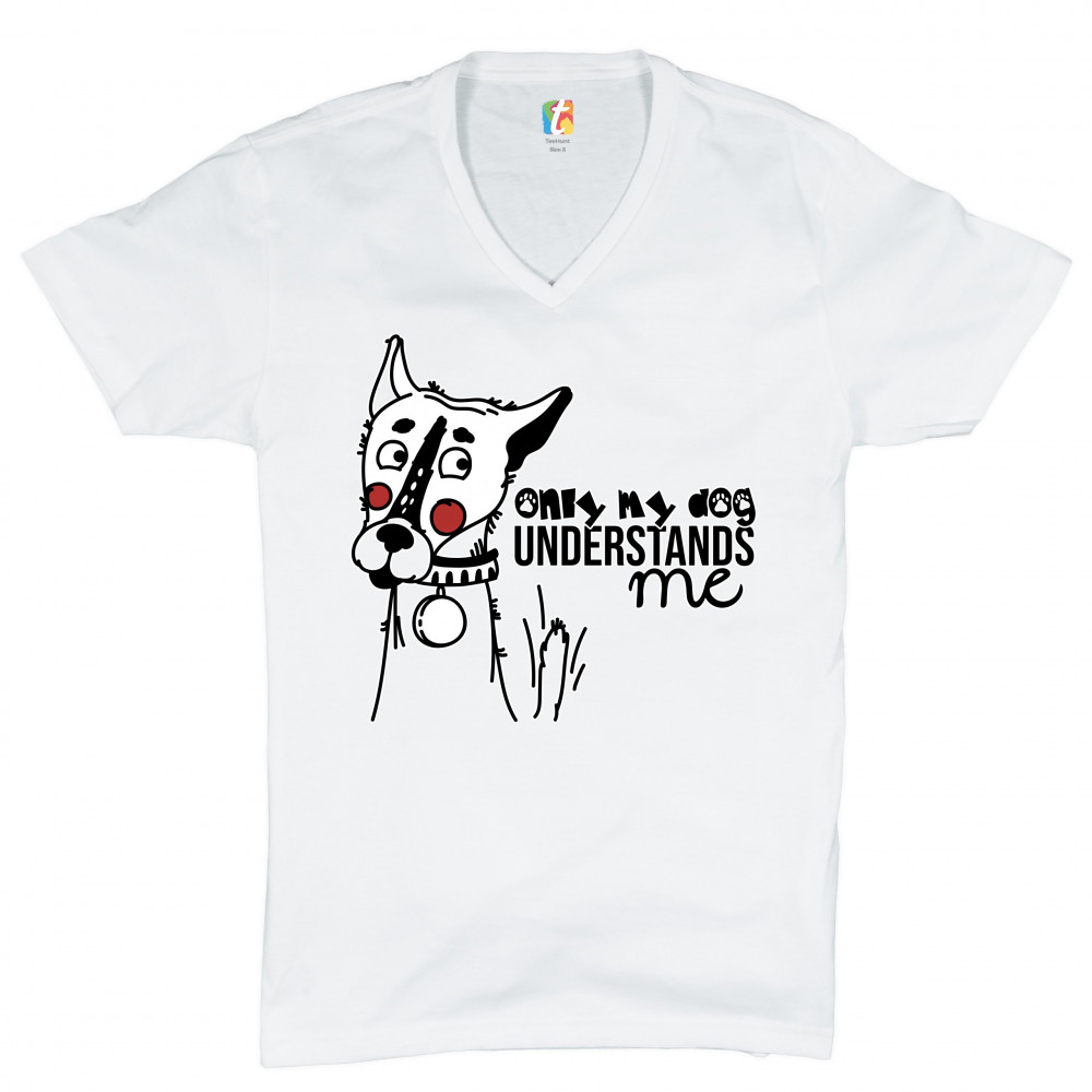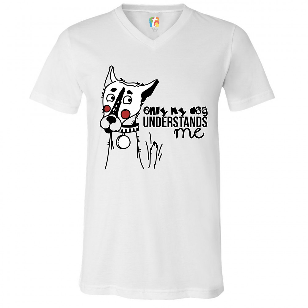 ONLY MY DOG UNDERSTANDS ME v-neck t-shirt spirit animal i love my dog tee white
