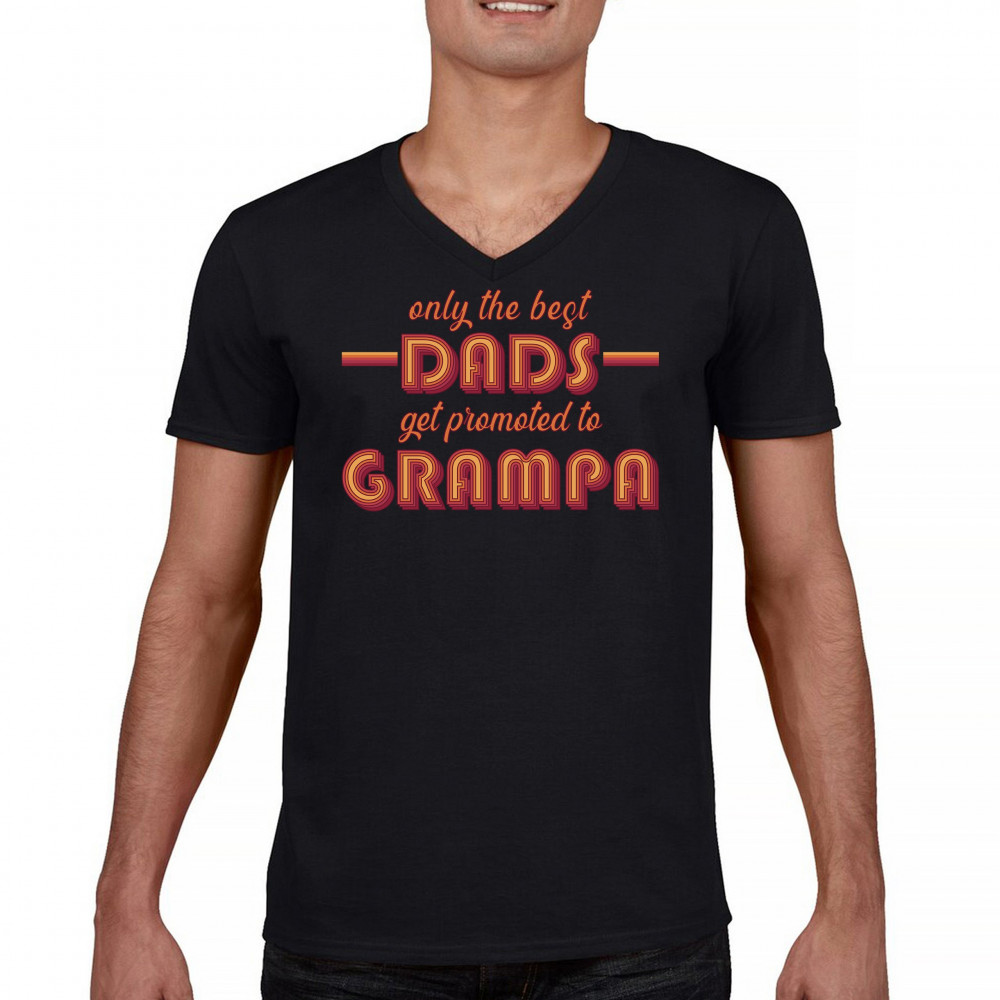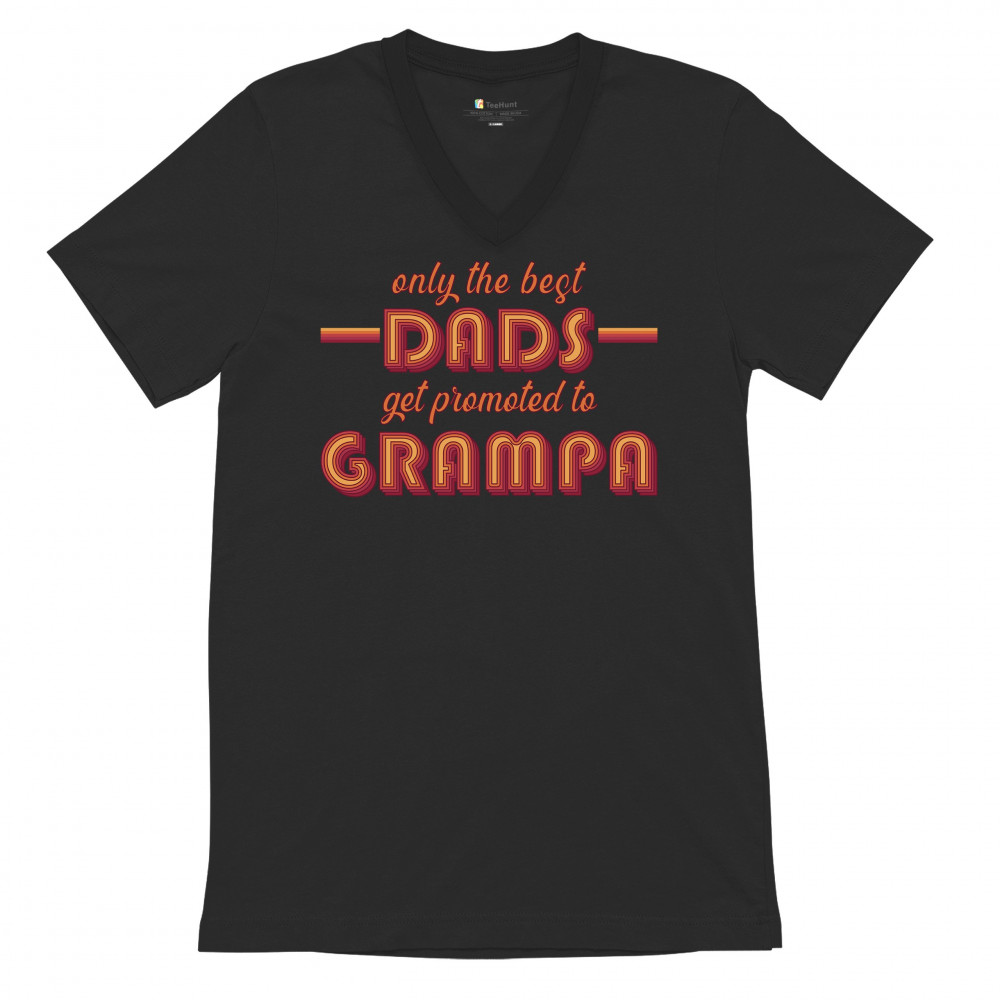 ONLY THE BEST DADS GET PROMOTED TO GRAMPA v-neck t-shirt funny grandpa tee black