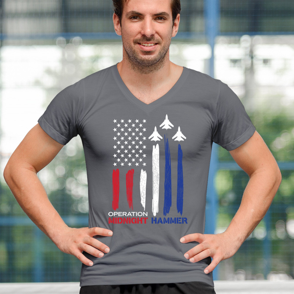 Operation Midnight Hammer captures the spirit of American strength with bold jets soaring over a brushstroke U.S. flag. Designed for patriots, veterans, and conservatives who honor military power, airforce pride, and the fight to preserve national values. Wear it loud, wear it proud.