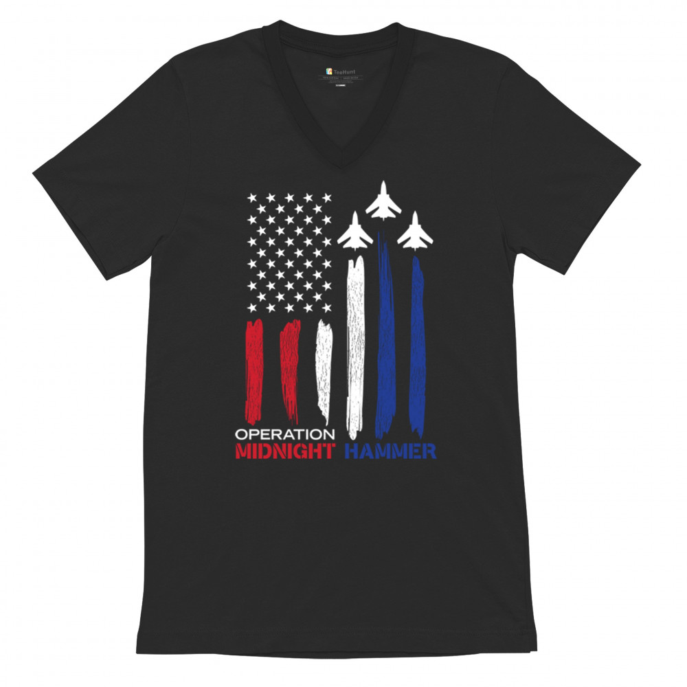 Operation Midnight Hammer design with jets and patriotic flag. Perfect for military pride, conservatives, and true America First supporters.