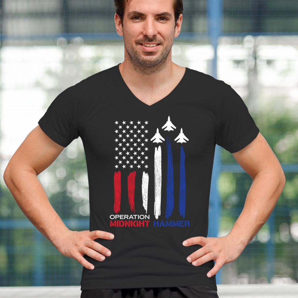 Operation Midnight Hammer captures the spirit of American strength with bold jets soaring over a brushstroke U.S. flag. Designed for patriots, veterans, and conservatives who honor military power, airforce pride, and the fight to preserve national values. Wear it loud, wear it proud.
