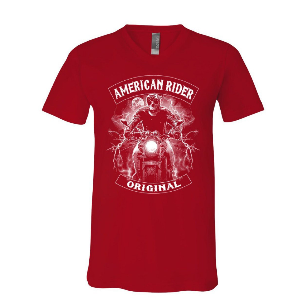 ORIGINAL AMERICAN RIDER v-neck t-shirt skull face route 66 biker mc tee red