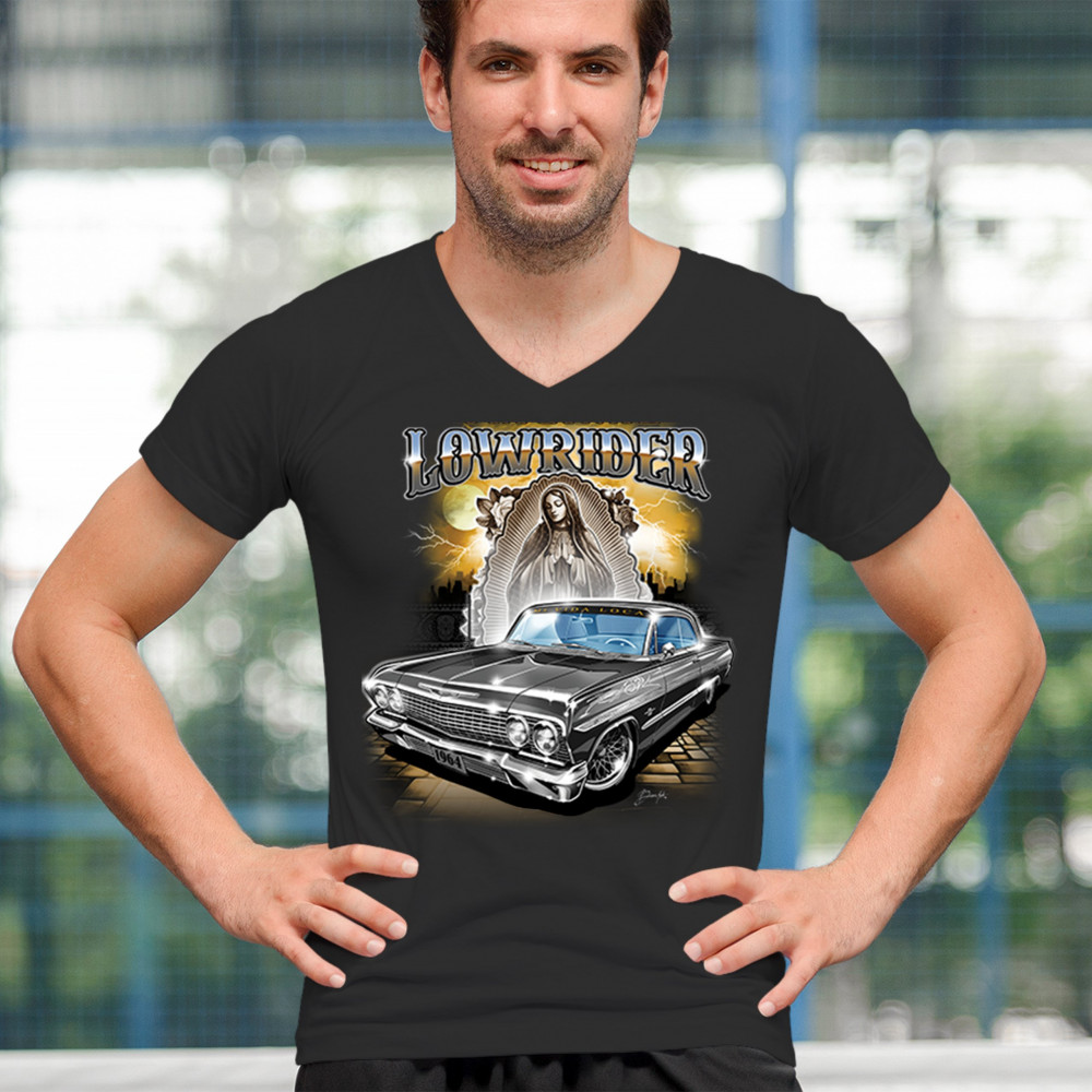 Unleash your love for custom cars with our "Original Lowrider" t-shirt. Showcasing a meticulously detailed 1964 lowrider, this shirt is a must-have for anyone passionate about car culture and street art. Whether you're attending a car show, hitting the streets, or just hanging out, this tee combines style and comfort. Made from premium materials, it ensures lasting quality and a great fit. Make your wardrobe stand out with this iconic lowrider design.