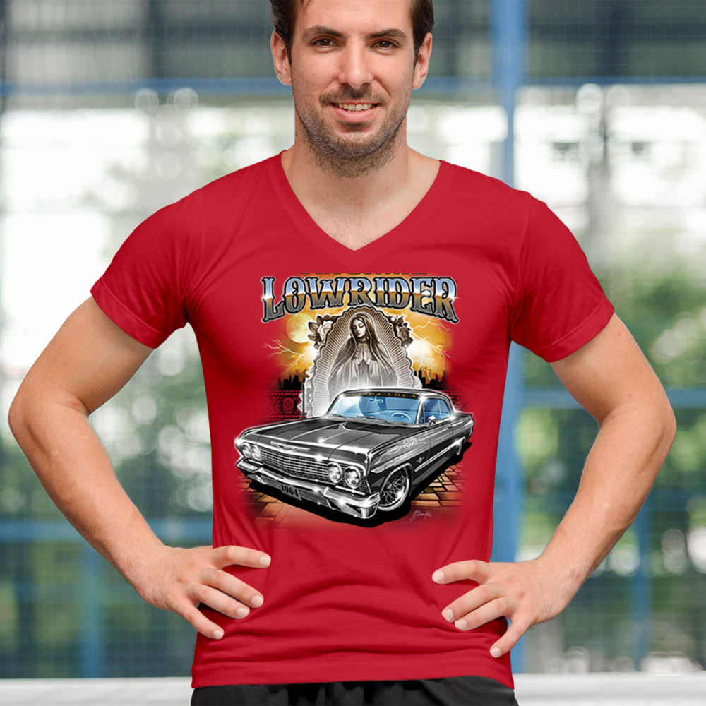 Unleash your love for custom cars with our "Original Lowrider" t-shirt. Showcasing a meticulously detailed 1964 lowrider, this shirt is a must-have for anyone passionate about car culture and street art. Whether you're attending a car show, hitting the streets, or just hanging out, this tee combines style and comfort. Made from premium materials, it ensures lasting quality and a great fit. Make your wardrobe stand out with this iconic lowrider design.