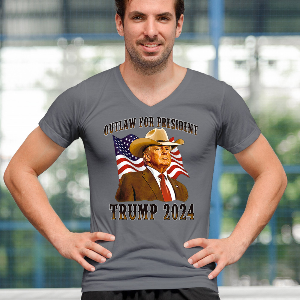 Bold "Outlaw for President" Trump 2024 design for conservative supporters, featuring Donald J. Trump and the American flag. Show your patriotism.