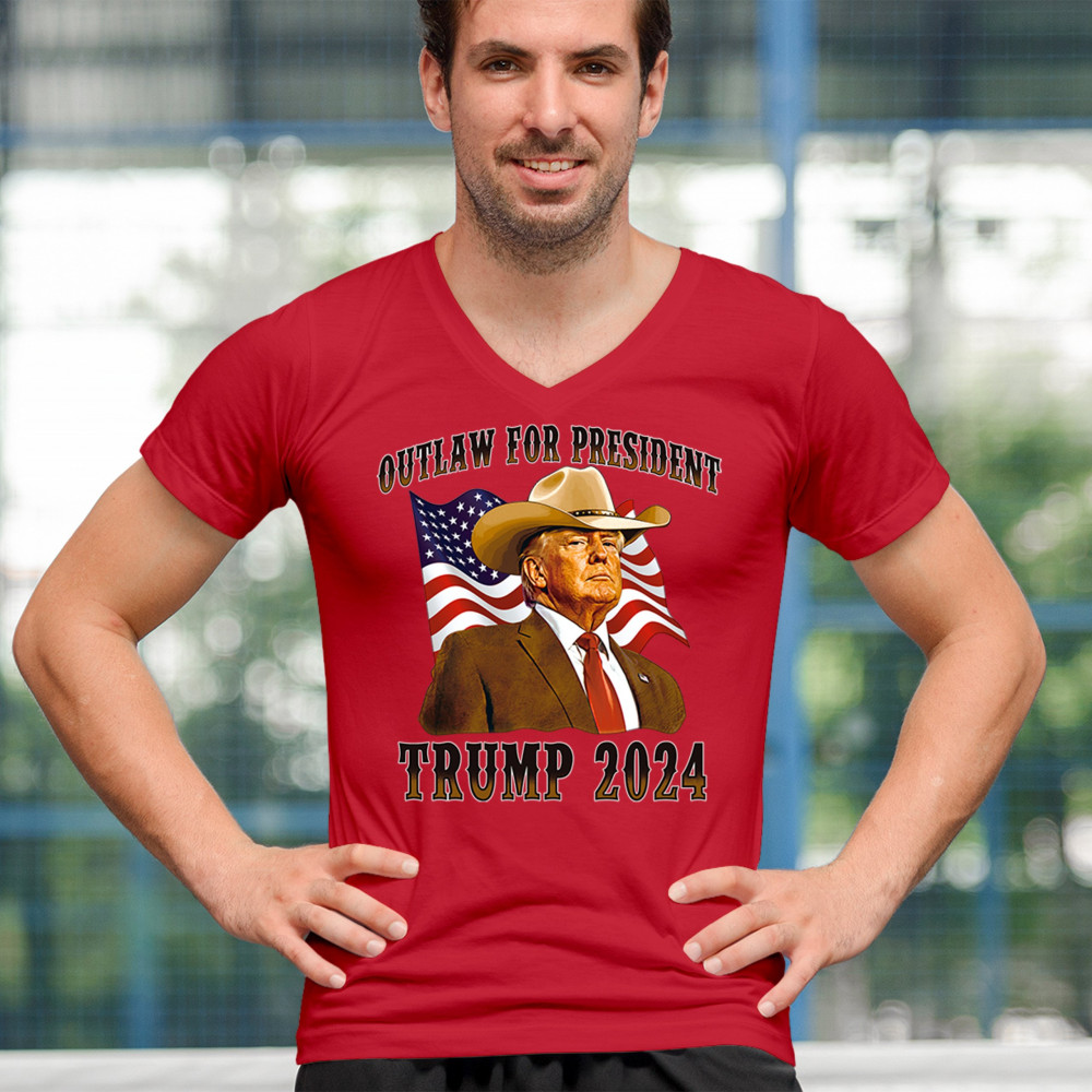 Bold "Outlaw for President" Trump 2024 design for conservative supporters, featuring Donald J. Trump and the American flag. Show your patriotism.