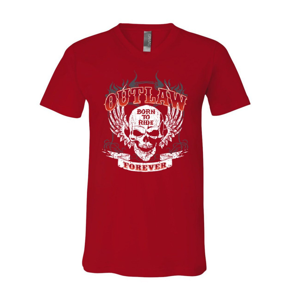 OUTLAW FOREVER v-neck t-shirt born to ride mc chopper bobber tee red