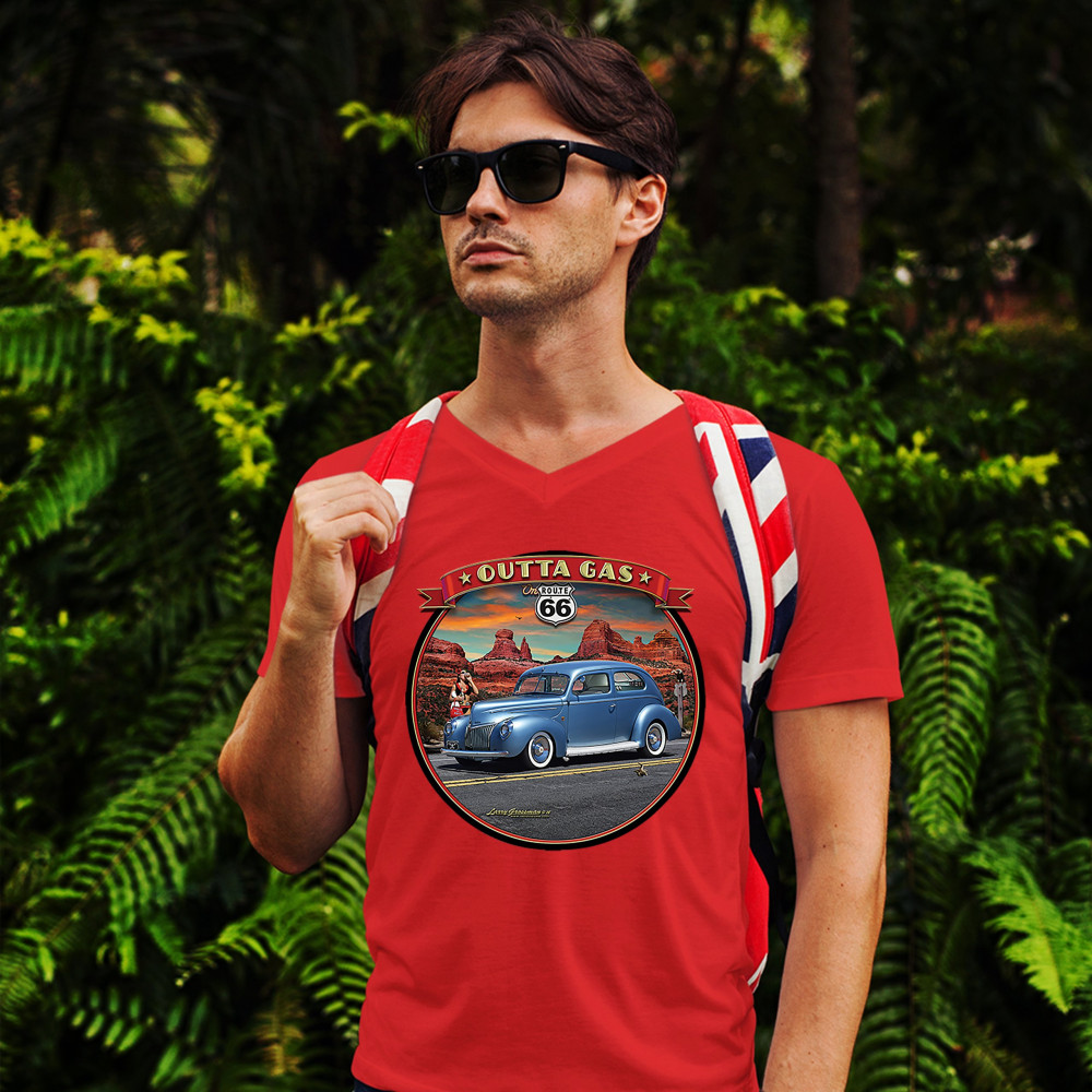 OUTTA GAS ON ROUTE 66 v-neck t-shirt the mother road retro vintage tee red