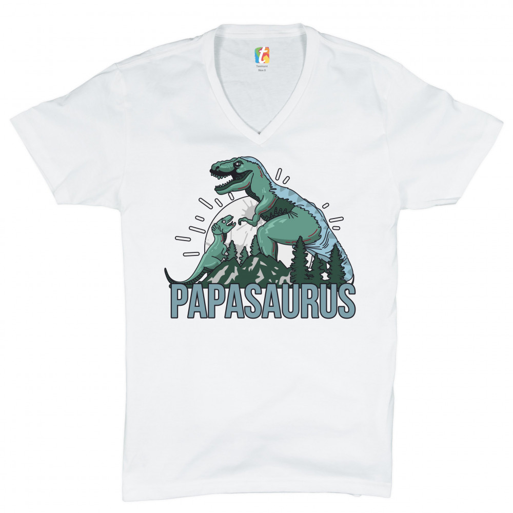PAPASAURUS v-neck t-shirt father's day t-rex dinosaur grandpa funny daddy tee white