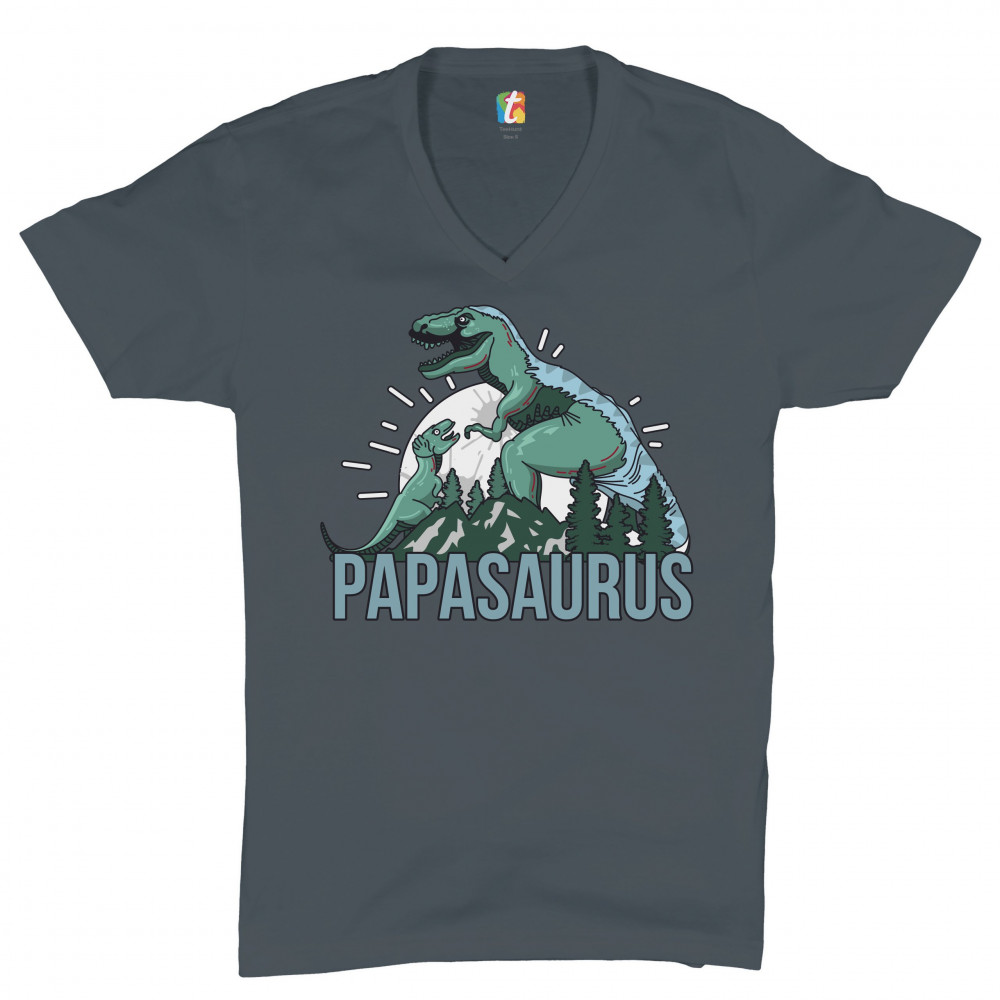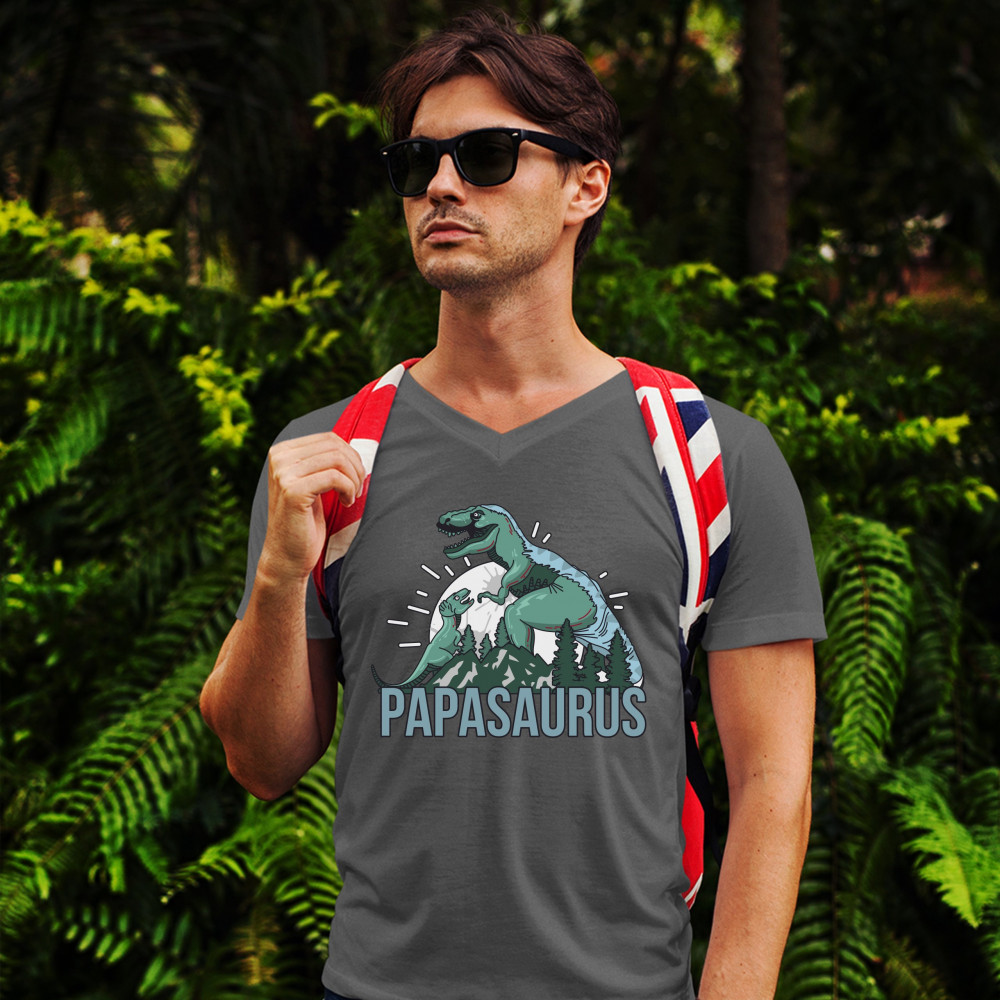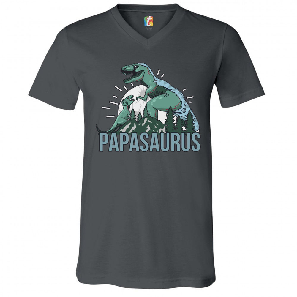 PAPASAURUS v-neck t-shirt father's day t-rex dinosaur grandpa funny daddy tee charcoal