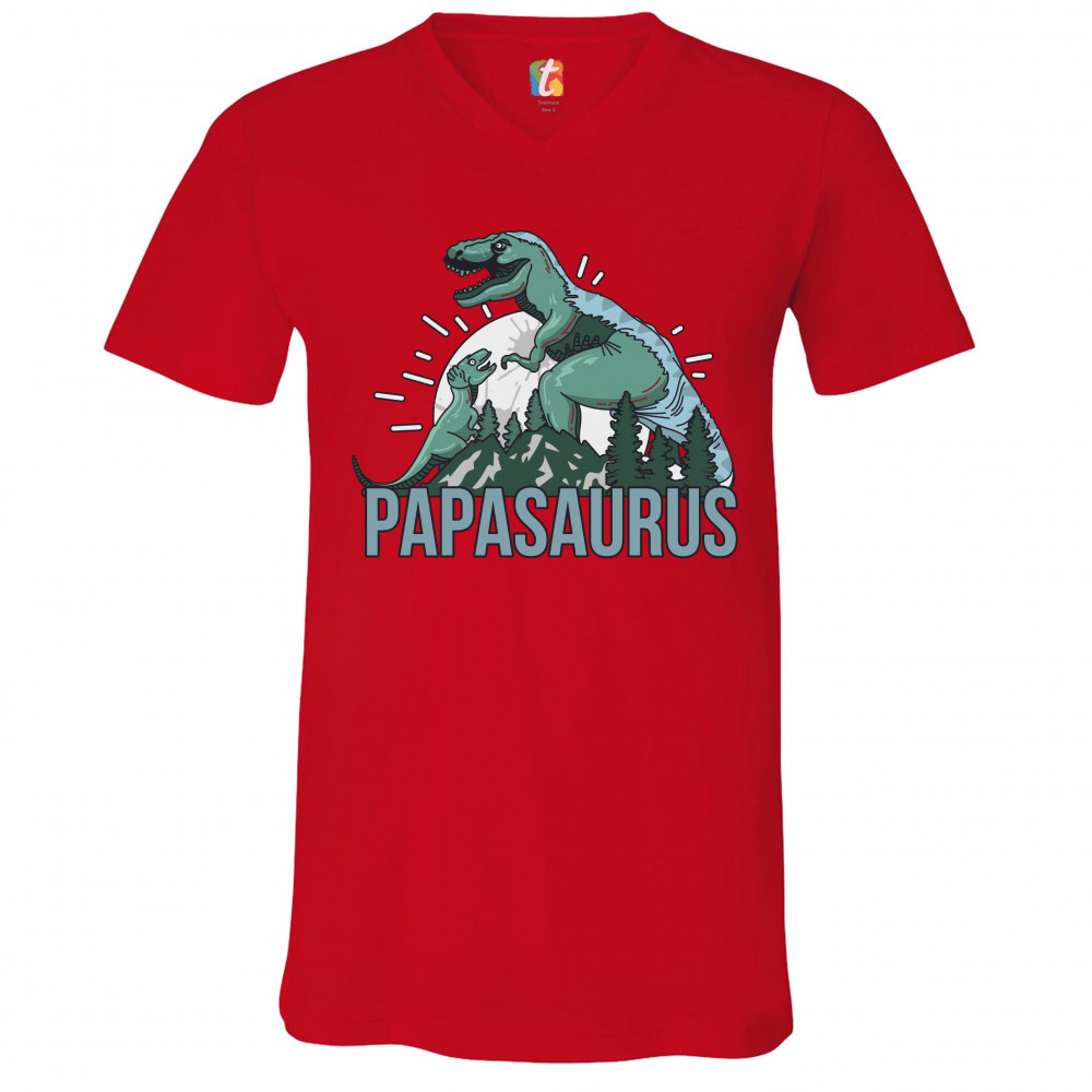 PAPASAURUS v-neck t-shirt father's day t-rex dinosaur grandpa funny daddy tee red