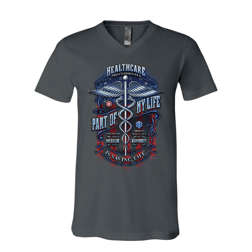 PART OF MY LIFE IS SAVING LIFE v-neck t-shirt nurse doctor emt medic tee charcoal