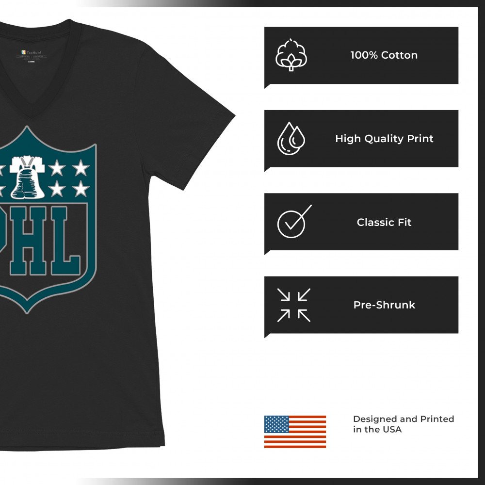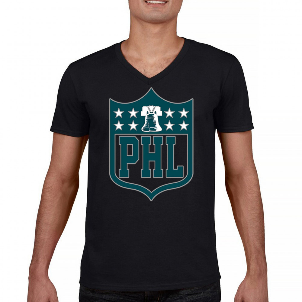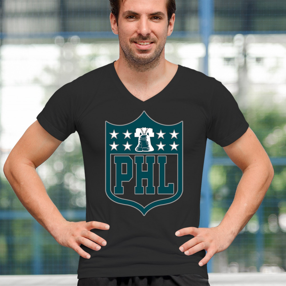 PHILADELPHIA SHIELD men's v-neck t-shirt birds football fan bleed green philly black
