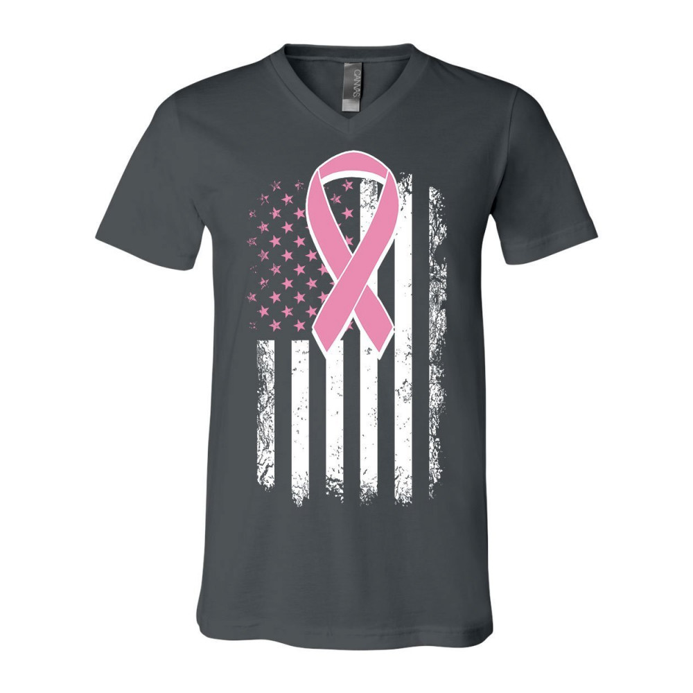 PINK RIBBON FLAG v-neck t-shirt breast cancer awareness tee charcoal