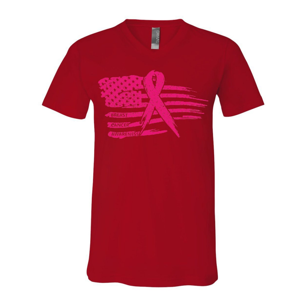 PINK RIBBON AMERICAN FLAG pink ribbon flag v-neck t-shirt breast cancer awareness hope survivor tee red