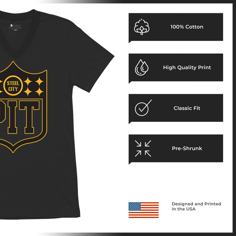 Steel City PIT shield football gear celebrating Pittsburgh football nation, gridiron tradition, playoff vibes, and sports heritage.