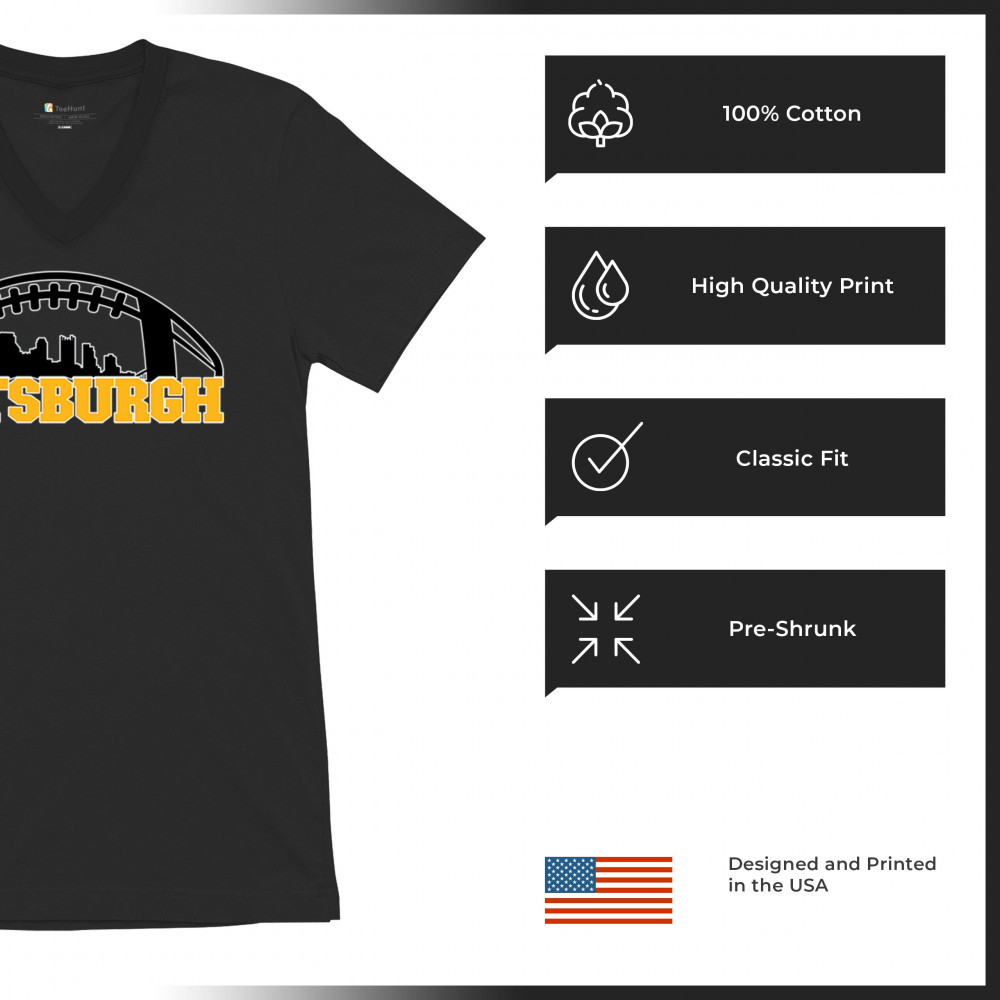 Embrace your Steel City pride with this bold Pittsburgh-themed design, showcasing the city skyline in a unique football graphic. Perfect for game day celebrations, tailgating parties, or everyday wear, this design captures the energy and passion of Pittsburgh's legendary sports culture. Whether you're cheering on your favorite team or representing your city, this design is a must-have for Pittsburgh fans.