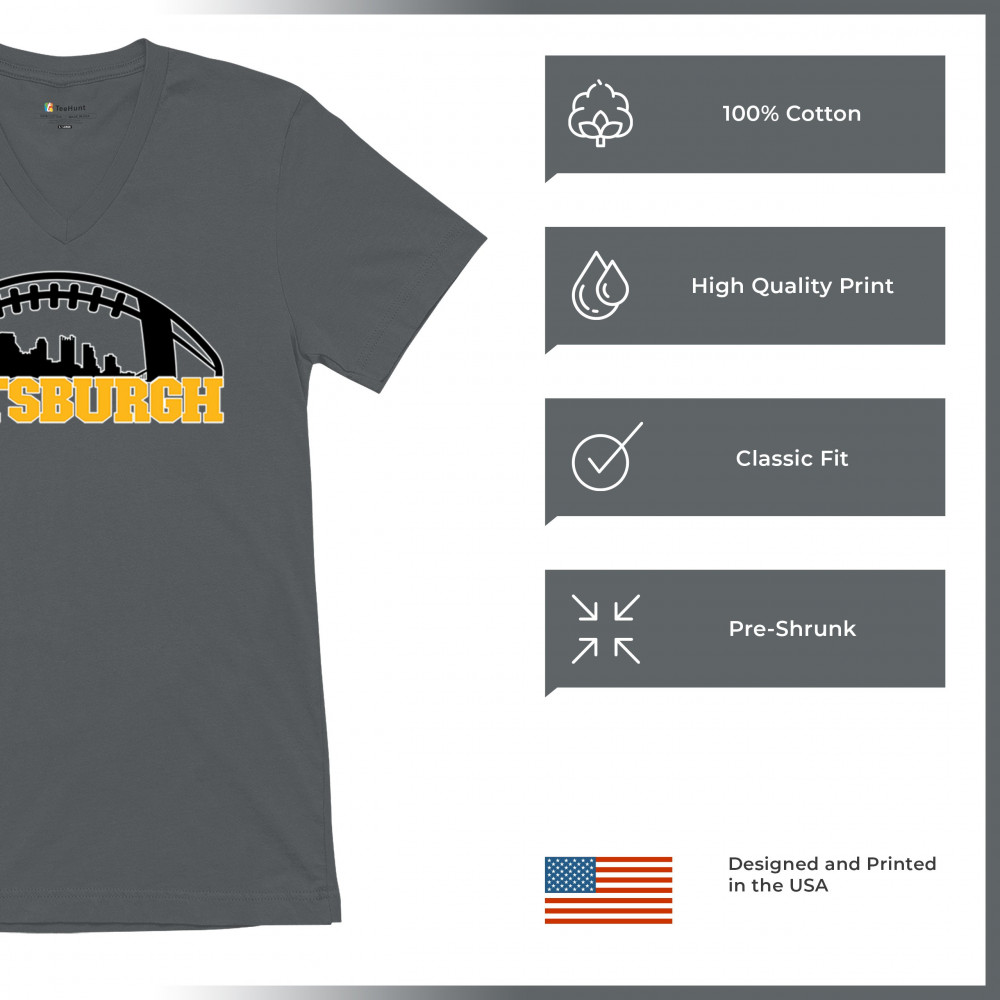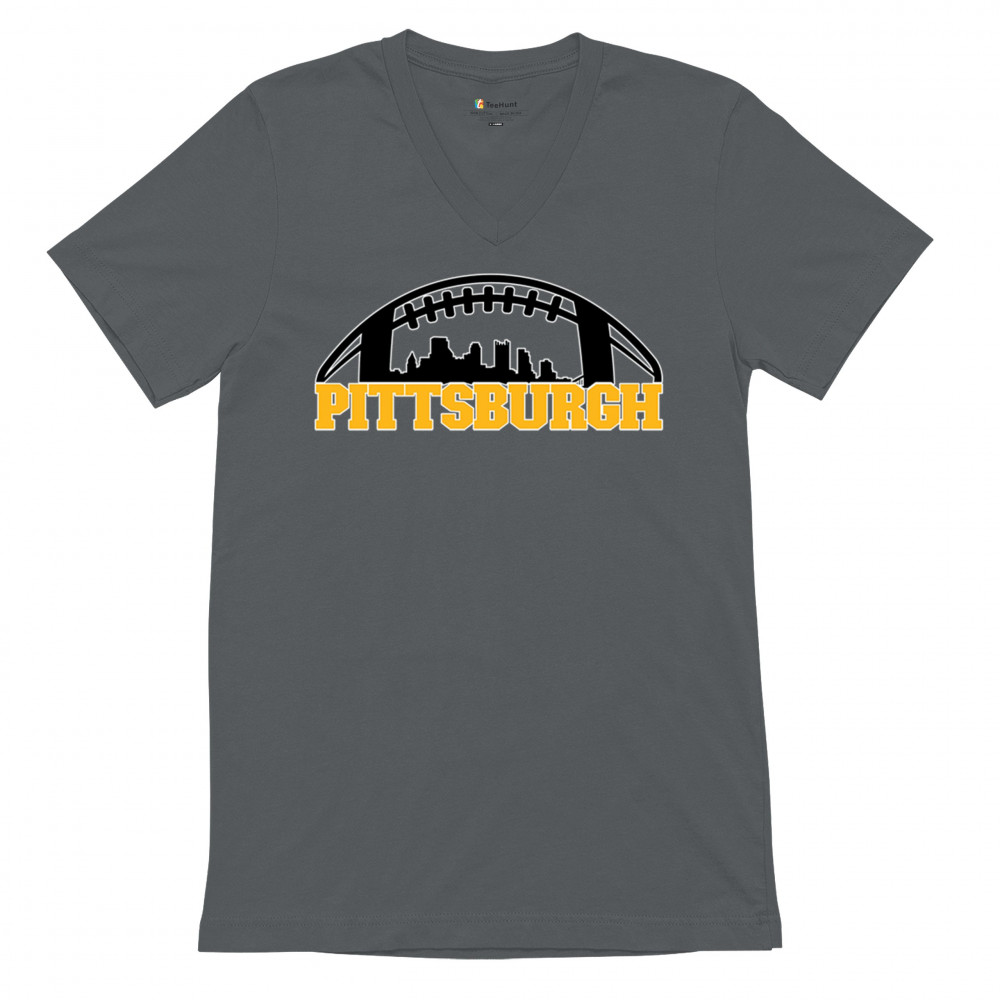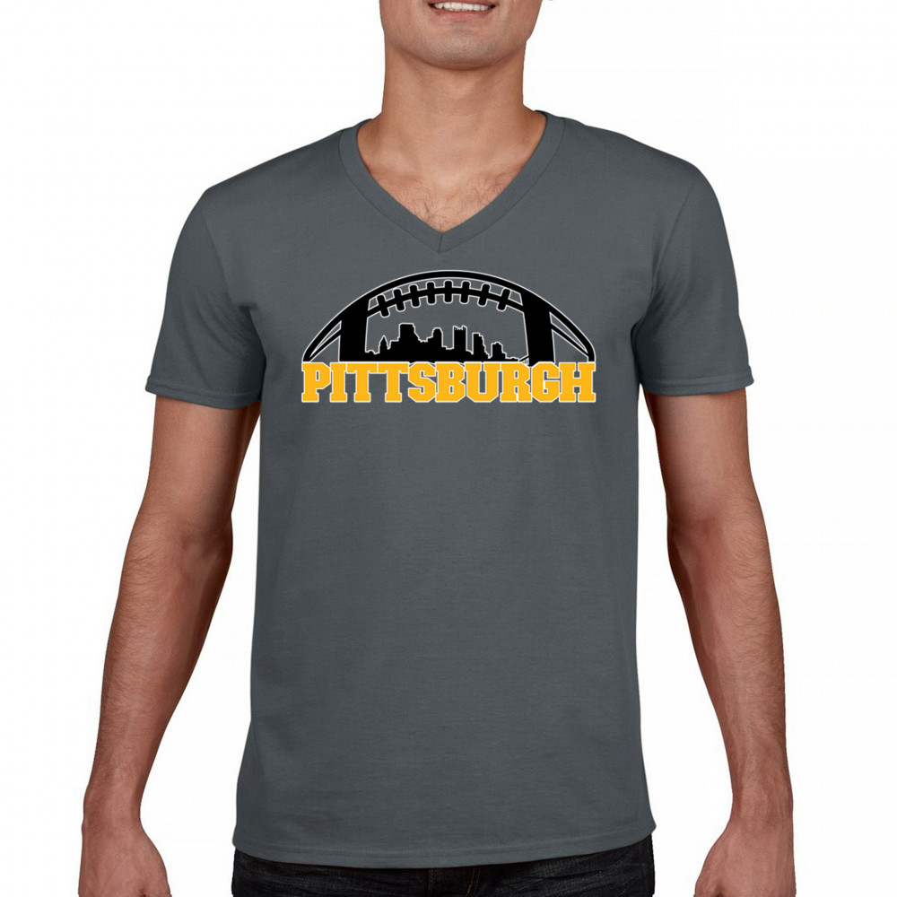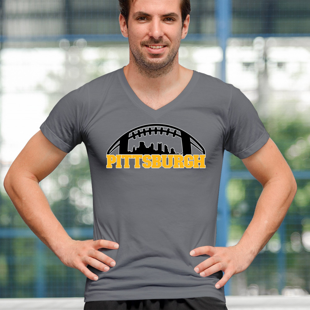 Embrace your Steel City pride with this bold Pittsburgh-themed design, showcasing the city skyline in a unique football graphic. Perfect for game day celebrations, tailgating parties, or everyday wear, this design captures the energy and passion of Pittsburgh's legendary sports culture. Whether you're cheering on your favorite team or representing your city, this design is a must-have for Pittsburgh fans.