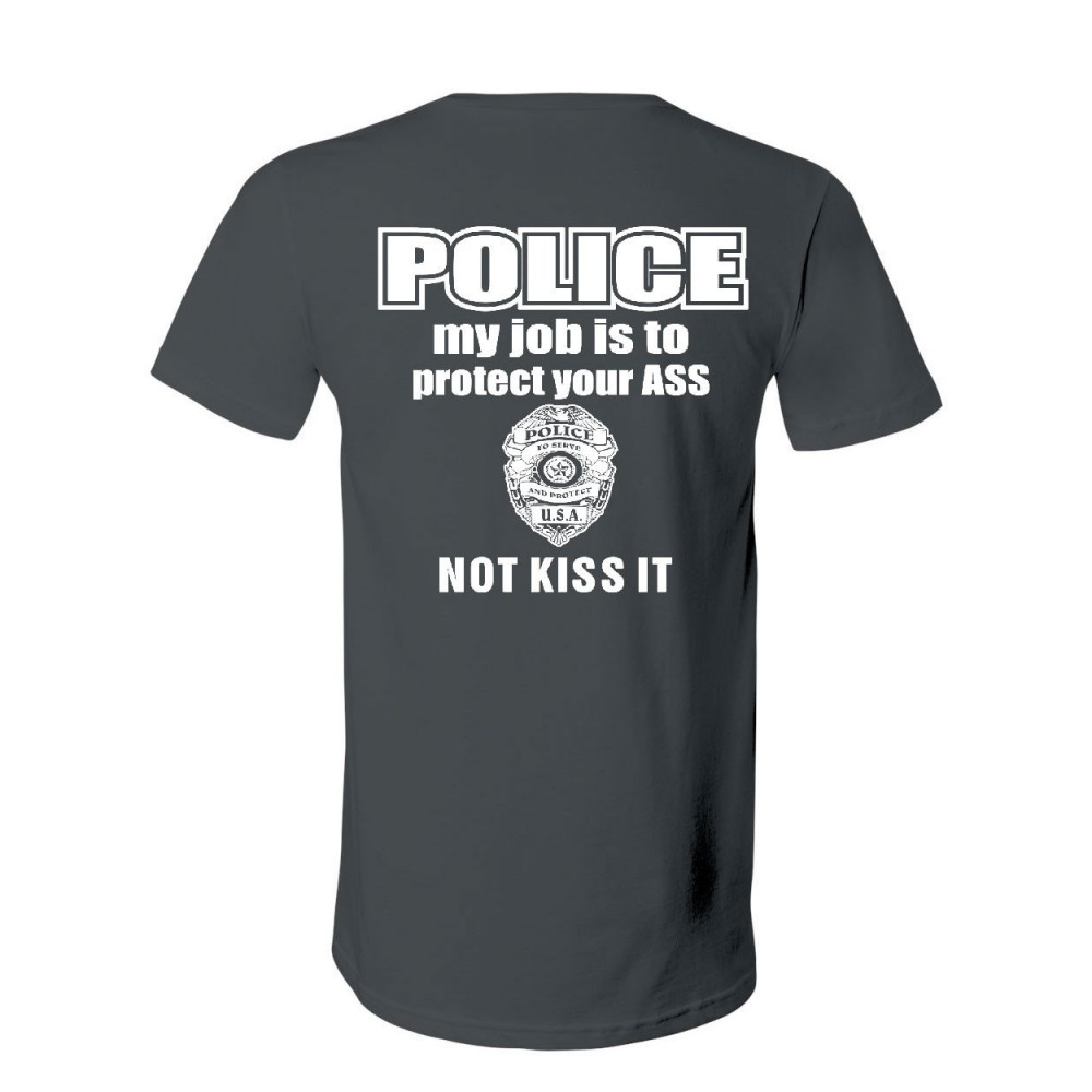 POLICE MY JOB IS TO PROTECT YOUR ASS v-neck t-shirt funny cop tee charcoal