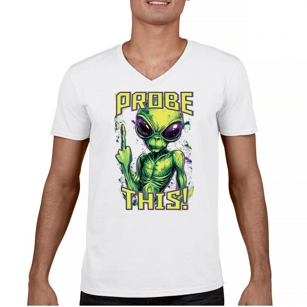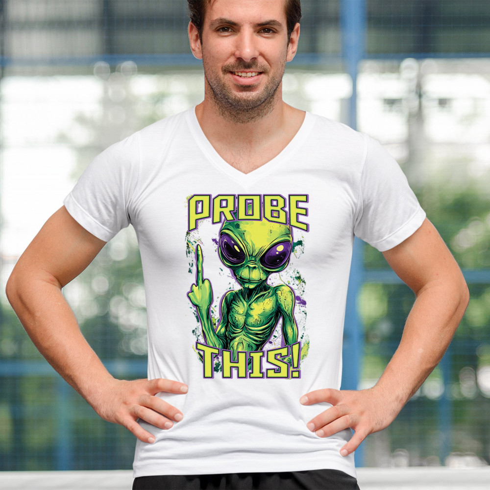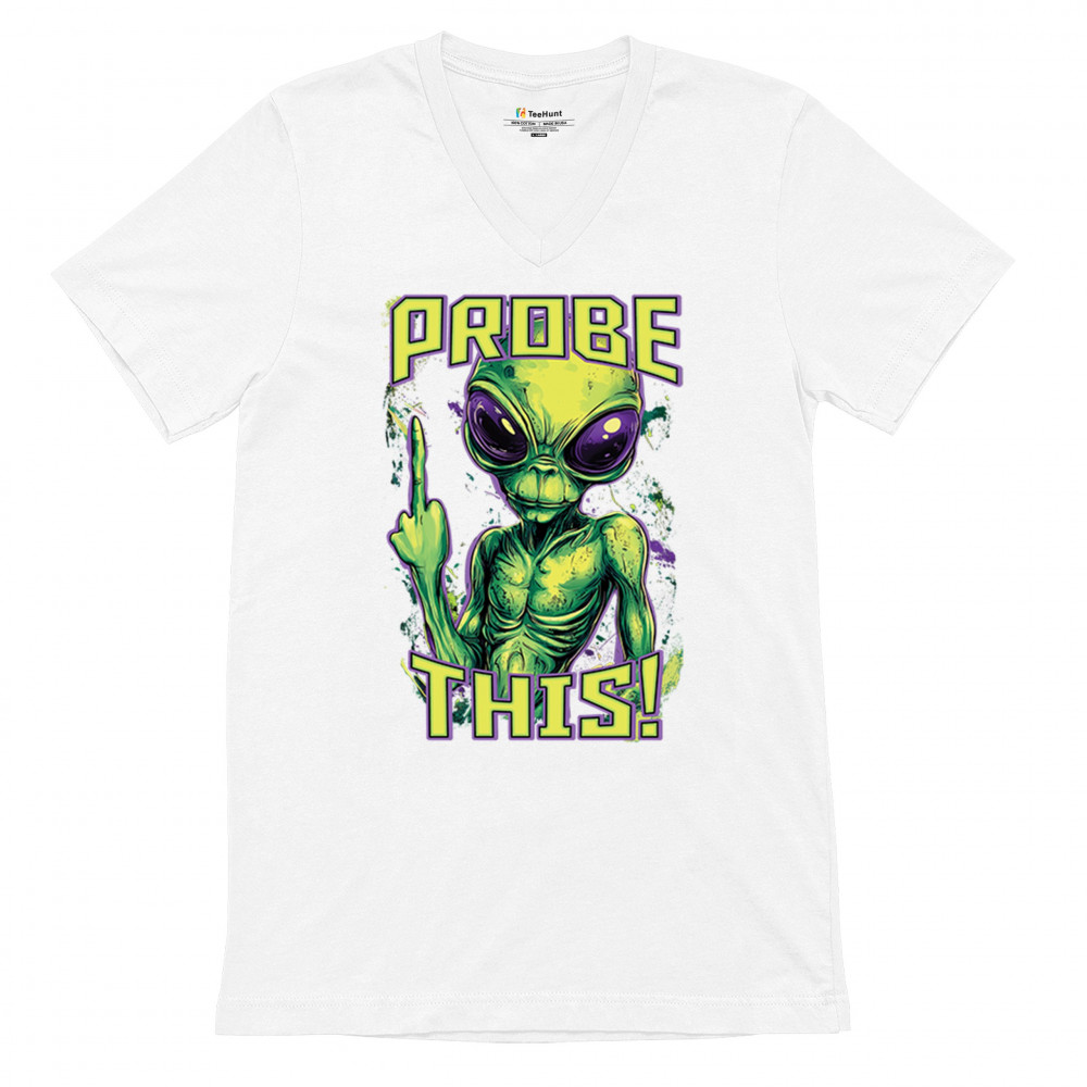 Alien attitude goes full throttle in this rebellious design featuring a defiant extraterrestrial flipping the bird. Bold green and purple tones amplify the sarcasm, making it perfect for UFO fans, protest vibes, and anyone with a dark sense of humor. Wear it loud to alien fests, parties, or anytime you want to stir the stars.