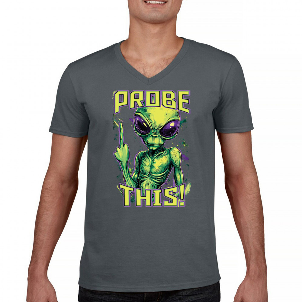 Alien attitude goes full throttle in this rebellious design featuring a defiant extraterrestrial flipping the bird. Bold green and purple tones amplify the sarcasm, making it perfect for UFO fans, protest vibes, and anyone with a dark sense of humor. Wear it loud to alien fests, parties, or anytime you want to stir the stars.