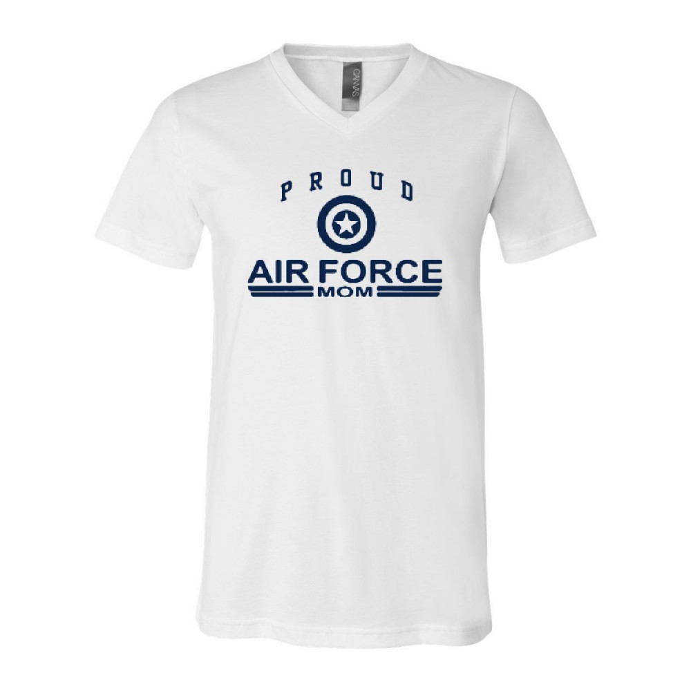 PROUD AIR FORCE MOM NAVY BLUE proud air force mom v-neck t-shirt us air force usaf tee white