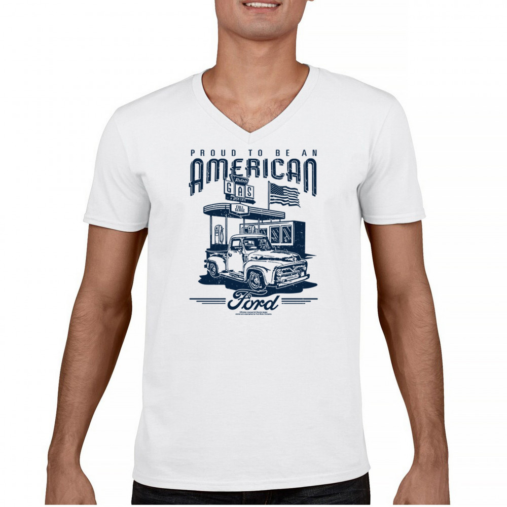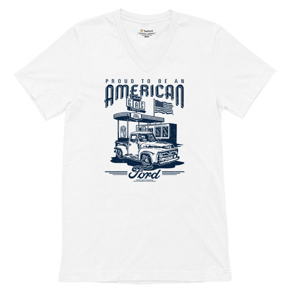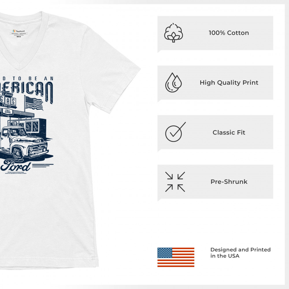 Celebrate Ford's legacy with this vintage 1950s F-Series truck design featuring an American flag. A perfect gift for Ford and classic car enthusiasts.
